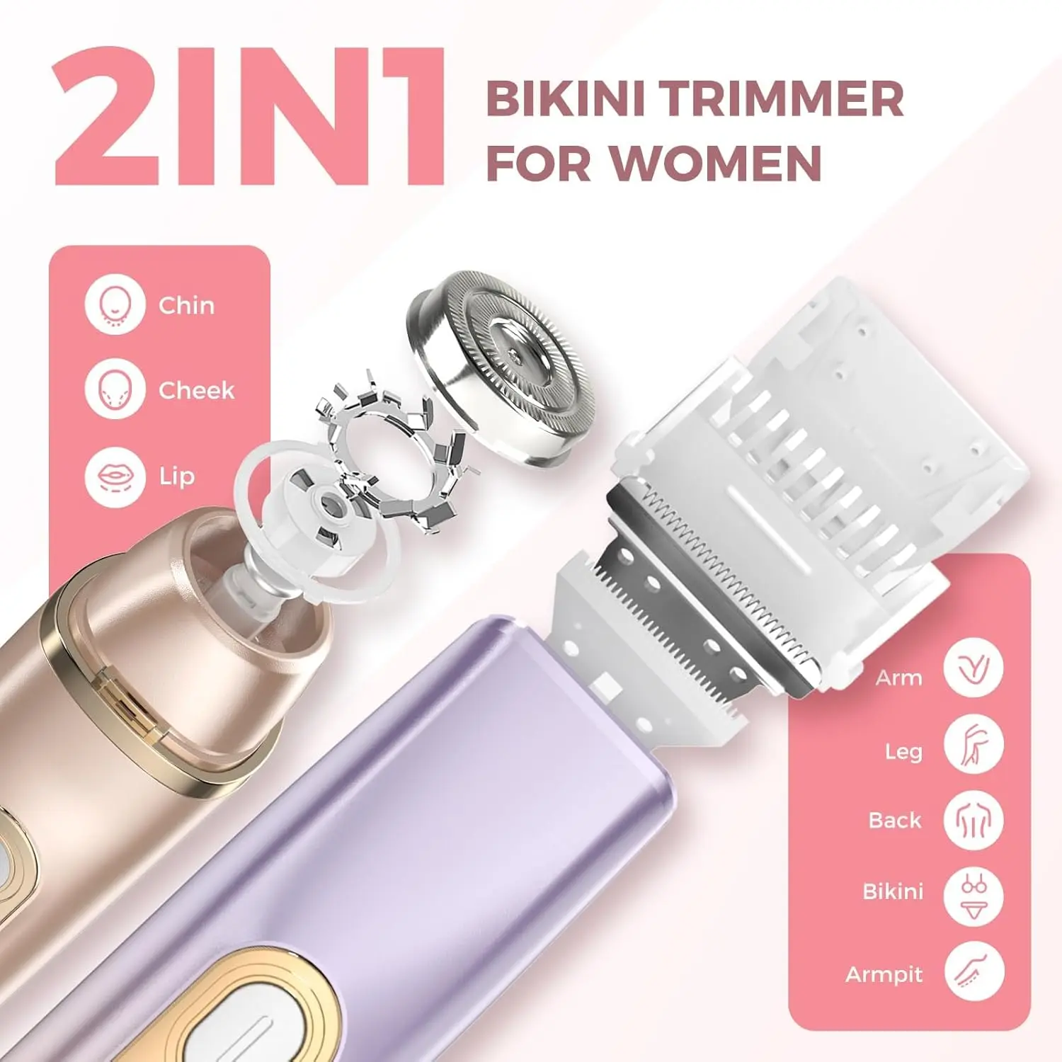 Experience ultimate grooming versatility with our 2-in-1 Electric Shaver for Women! This innovative device features a dual-head design, combining a sharp ceramic blade for quick and efficient body hair trimming with a dual-ring foil head for precise hair removal on delicate areas like the bikini line, face, and underarms. Say goodbye to frequent blade changes and hello to 50% greater efficiency! Enjoy smooth, painless hair removal thanks to the hypoallergenic ceramic blades that glide effortlessly over your skin, even sensitive areas. The powerful 10,000 RPM motor ensures swift and stable hair removal, preventing tugging and irritation. The ergonomic, non-slip handle provides precise control for a comfortable and effective grooming experience. This electric razor is also IPX7 waterproof, making it safe and easy to use in the shower or bath. Its wet-and-dry design allows for use with foam or shower gel for an even smoother shave. Cleaning is a breeze – simply rinse under water for 30 seconds! With a USB fast-charging design, this shaver reaches full charge in just 1.5 hours, providing up to 90 minutes of runtime. Its compact and portable design makes it perfect for travel. It’s an ideal gift for any occasion, beautifully packaged and guaranteed with a 60-day hassle-free return policy and a lifetime warranty.