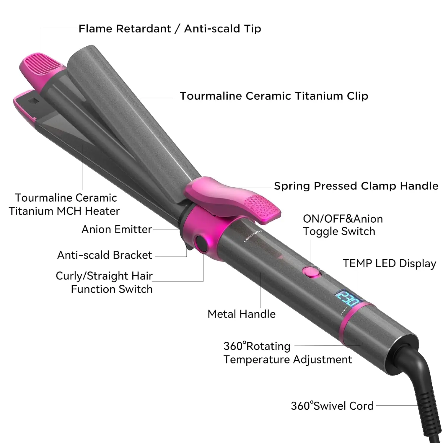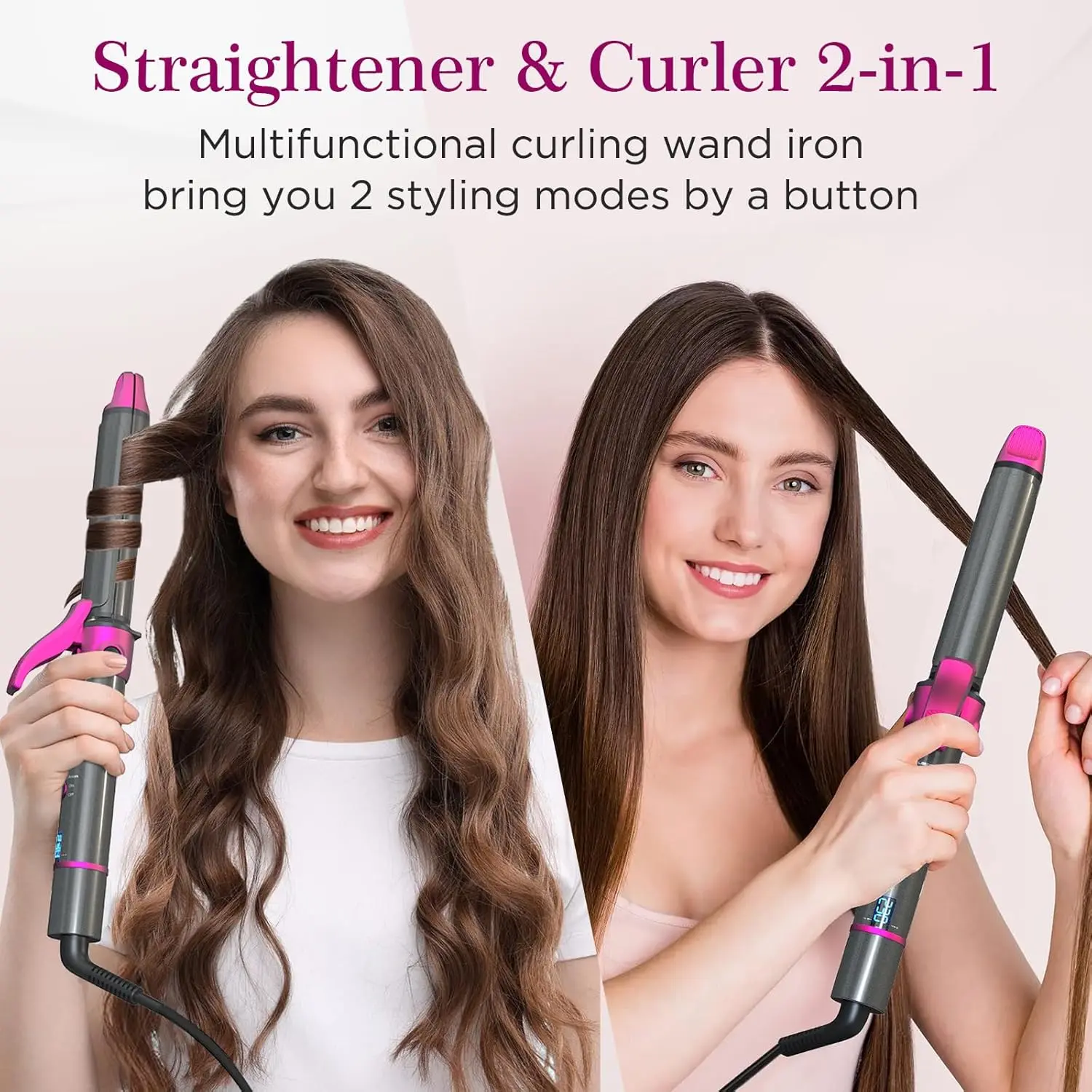 • 2-in-1 design: Functions as both a curling iron and a hair straightener.