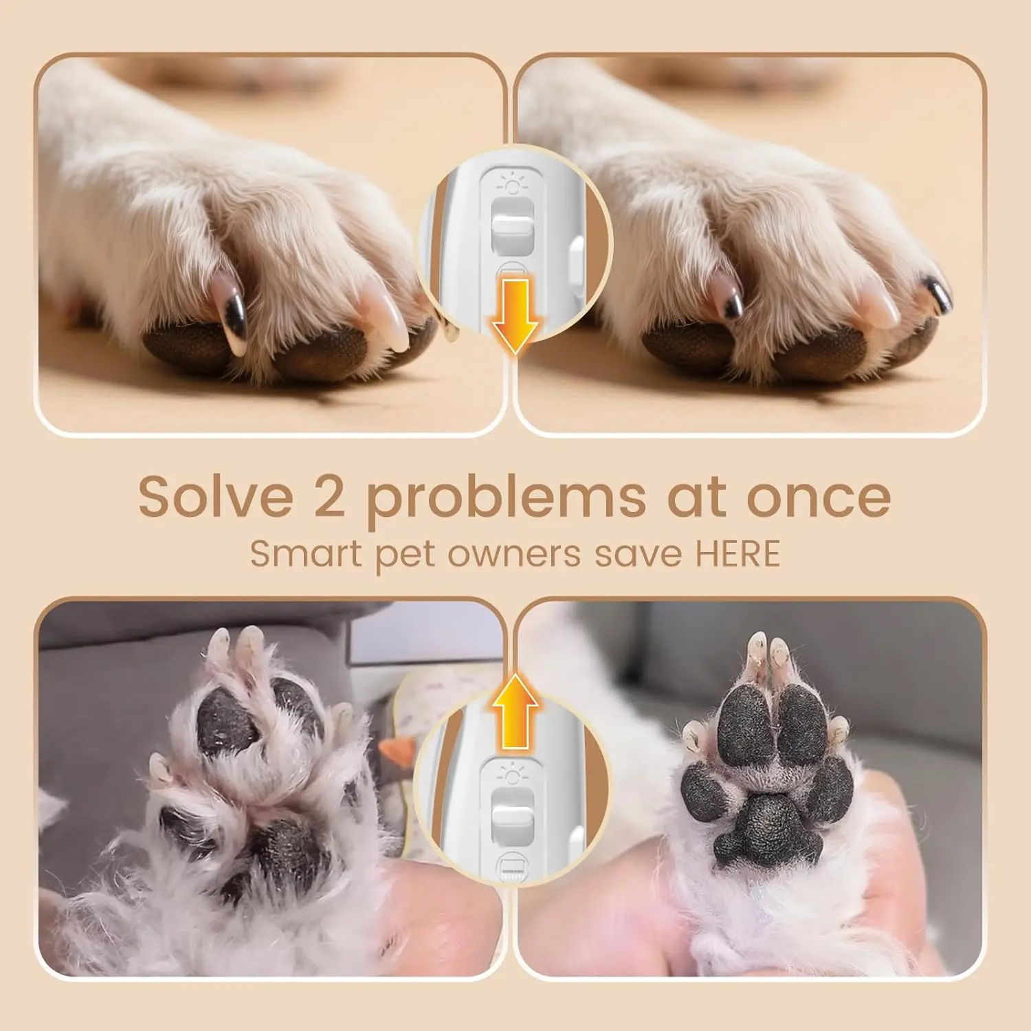 The integrated LED light provides enhanced visibility, shining through light-colored nails to reveal the quick and preventing accidental cuts. Dual low-temperature lights illuminate both the quick and dense fur on dark paw pads, ensuring safe and stress-free dog or cat nail trimming.