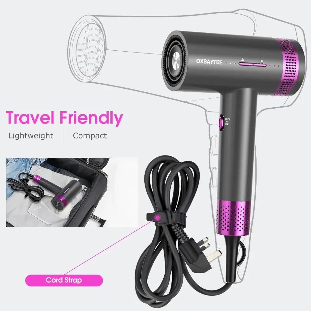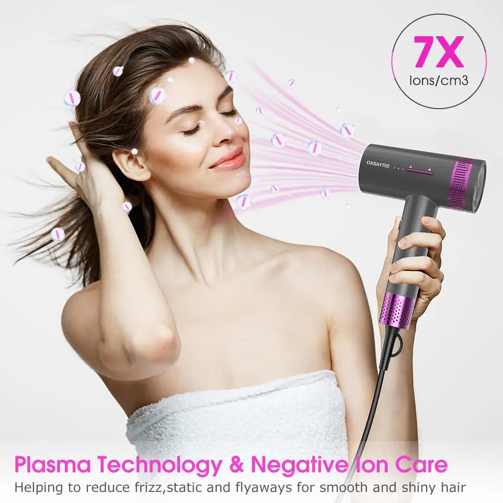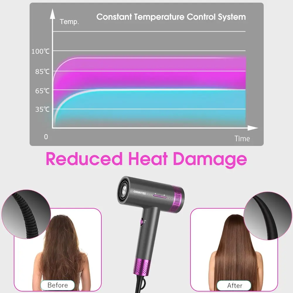 Experience salon-quality hair drying at home with our powerful 2000W Ionic Hair Dryer. This upgraded 2025 version features a high-torque DC motor that delivers a strong, concentrated airflow, significantly reducing drying time by up to 3 minutes compared to traditional dryers. Designed with ergonomics in mind, the comfortable grip minimizes arm fatigue during use, making your hair styling routine a breeze. The constant temperature technology ensures even heat distribution, preventing damage and frizz, while deeply nourishing your hair for a soft, glossy finish. The built-in negative ion technology neutralizes static electricity, sealing the hair cuticle, and locking in moisture. Choose from 3 wind speeds (Low/Med/High) and 4 heat levels (Cool/Low/Med/High) to customize your drying experience based on your hair type and desired style. Includes a smooth concentrator and styling nozzle for versatile styling options. Its safety features such as safety plug and back mesh filter offer maximum protection and easy maintaince.