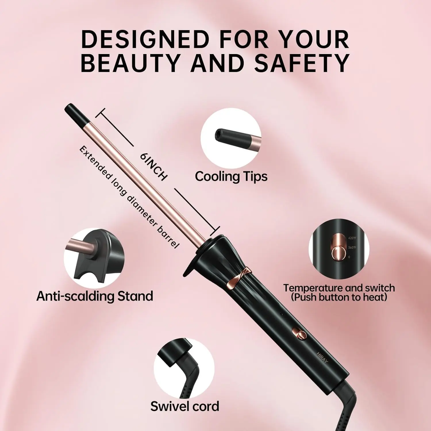 Achieve perfect spiral curls with this 9mm small curling wand! It features dual voltage, rapid heating, and a protective ceramic coating. Ideal for travel and home use.
