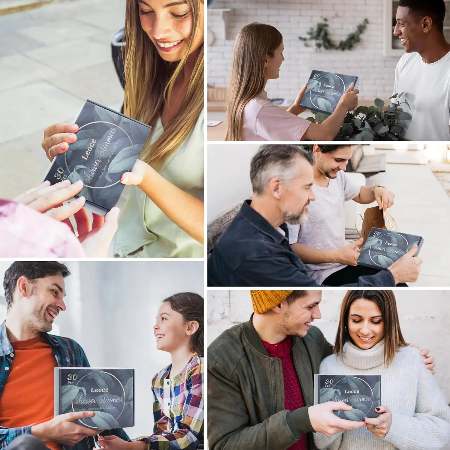 Enjoy a home spa experience with 30 aromatherapy shower steamers. These natural, strong-scented shower bombs come in 6 fragrances, perfect for stress relief. A great gift for men and women!