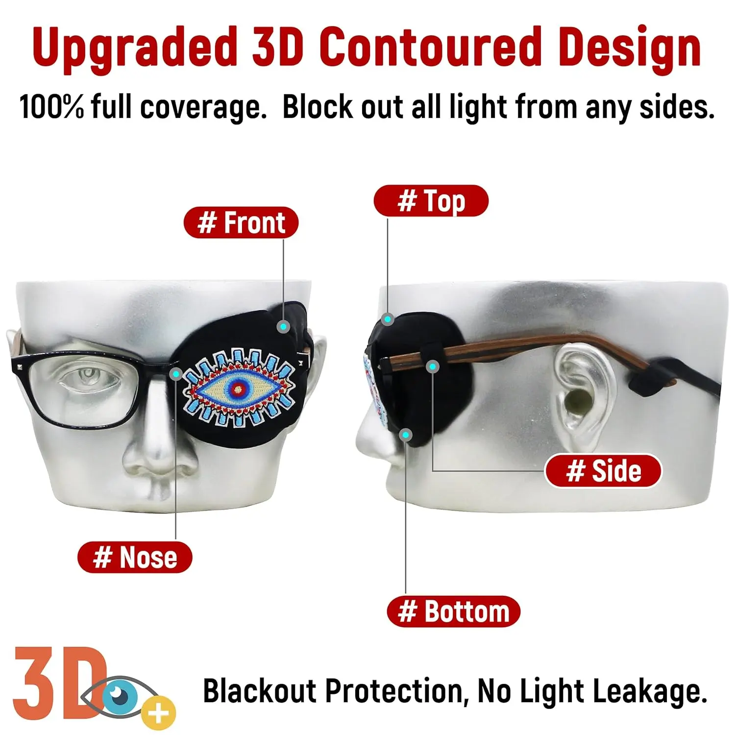 Experience unparalleled comfort and complete light blockage with our upgraded 3D Silk Eye Patch, meticulously designed for those who wear glasses. This black eye patch for the left eye provides an effective patching treatment, ensuring optimal visual development. Say goodbye to annoying light leaks! Our innovative 3D contoured design creates a perfect seal, blocking out all light and vision to the covered eye. Crafted from 100% pure Mulberry Silk, this eye patch is exceptionally breathable, hypoallergenic, and incredibly soft against even the most sensitive skin. Unlike other eye patches that can irritate the delicate skin around the eye, our silk material provides a gentle and soothing touch. The super lightweight over-glasses design ensures a comfortable fit without putting any pressure or pulling on your glasses. We understand the discomfort of thick pads pressing against the eyelid, so we’ve eliminated them altogether. You’ll barely notice you’re wearing it! Our eye patch is not only comfortable and effective but also environmentally conscious. It’s washable and reusable, making it a sustainable alternative to disposable patches. Rest assured, it’s made to last, with no fraying issues. Keeping it clean and preventing misplacement is easy with the included carrying case, which keeps the eye patch safe and hygienic while you’re on the go. Choose our 3D Silk Eye Patch for a superior patching experience that combines comfort, effectiveness, and sustainability.