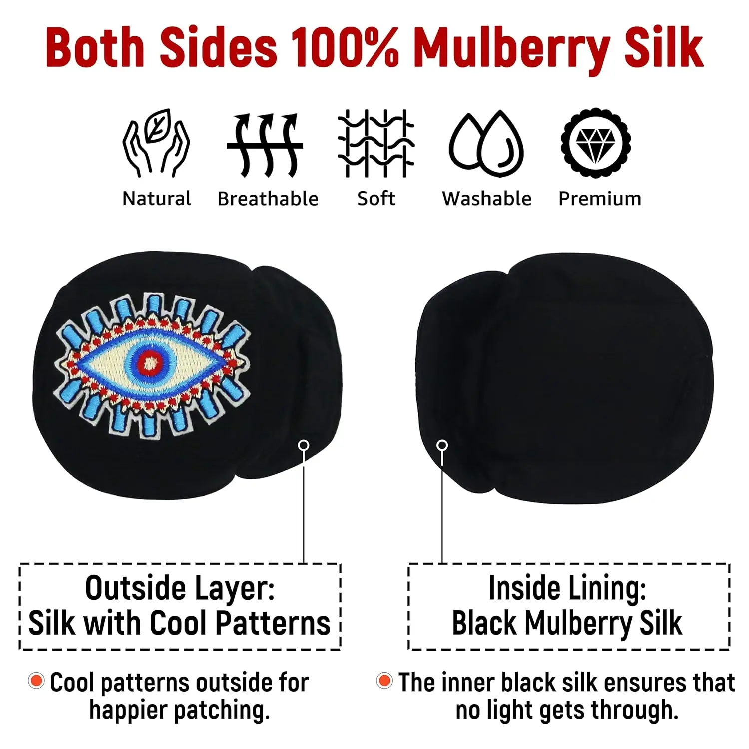 • 100% Mulberry Silk Material: Breathable, hypoallergenic, super soft against sensitive skin.