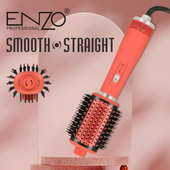 Experience salon-quality styling at home or on the go with the ENZO 4-in-1 Hair Dryer Brush! This innovative tool combines the power of a hair dryer, straightener, volumizer, and styling brush into a single, lightweight device. Say goodbye to cluttered countertops and hello to effortless styling! The high-speed 1500W motor delivers powerful airflow, drying and styling your hair quickly and efficiently, regardless of hair type. Tired of frizz? Our Ionic Frizz-Control Technology emits negative ions, neutralizing static and sealing the hair cuticle to lock in moisture, reduce frizz, and enhance shine, leaving you with smooth, healthy-looking hair. The ergonomic design and lightweight construction (just 0.78 kg) ensure a comfortable grip and easy handling, even during longer styling sessions. Take your styling routine anywhere! Its compact size and universal voltage (220–240V) make this hair dryer brush the perfect travel companion. Whether you’re looking to dry, straighten, volumize, or create stunning styles, the ENZO 4-in-1 Hair Dryer Brush is your all-in-one solution for beautiful, manageable hair. Ditch the multiple devices and simplify your routine with this versatile styling tool. Achieve salon results with ease and enjoy frizz-free, shiny, and perfectly styled hair every time. It’s powerful, portable, and perfect for achieving a variety of looks!