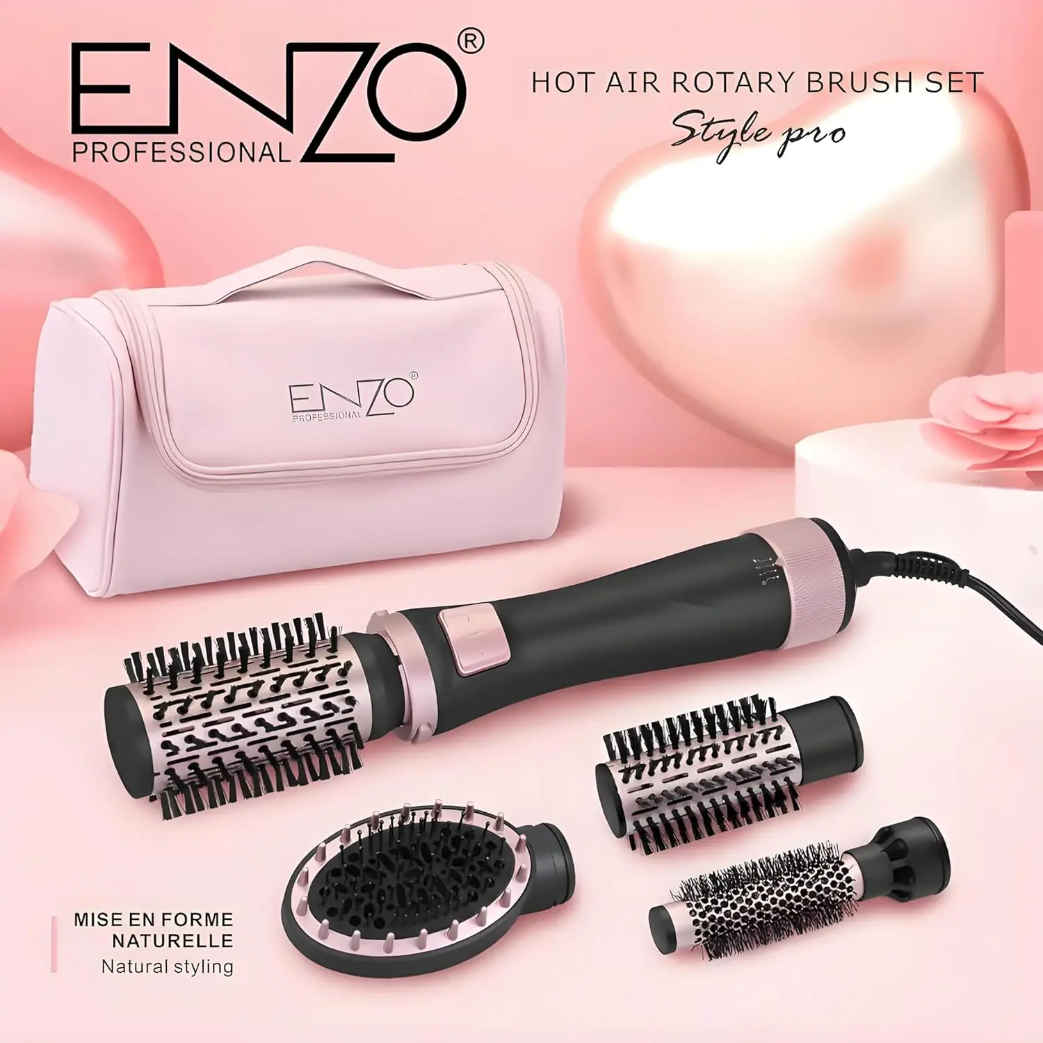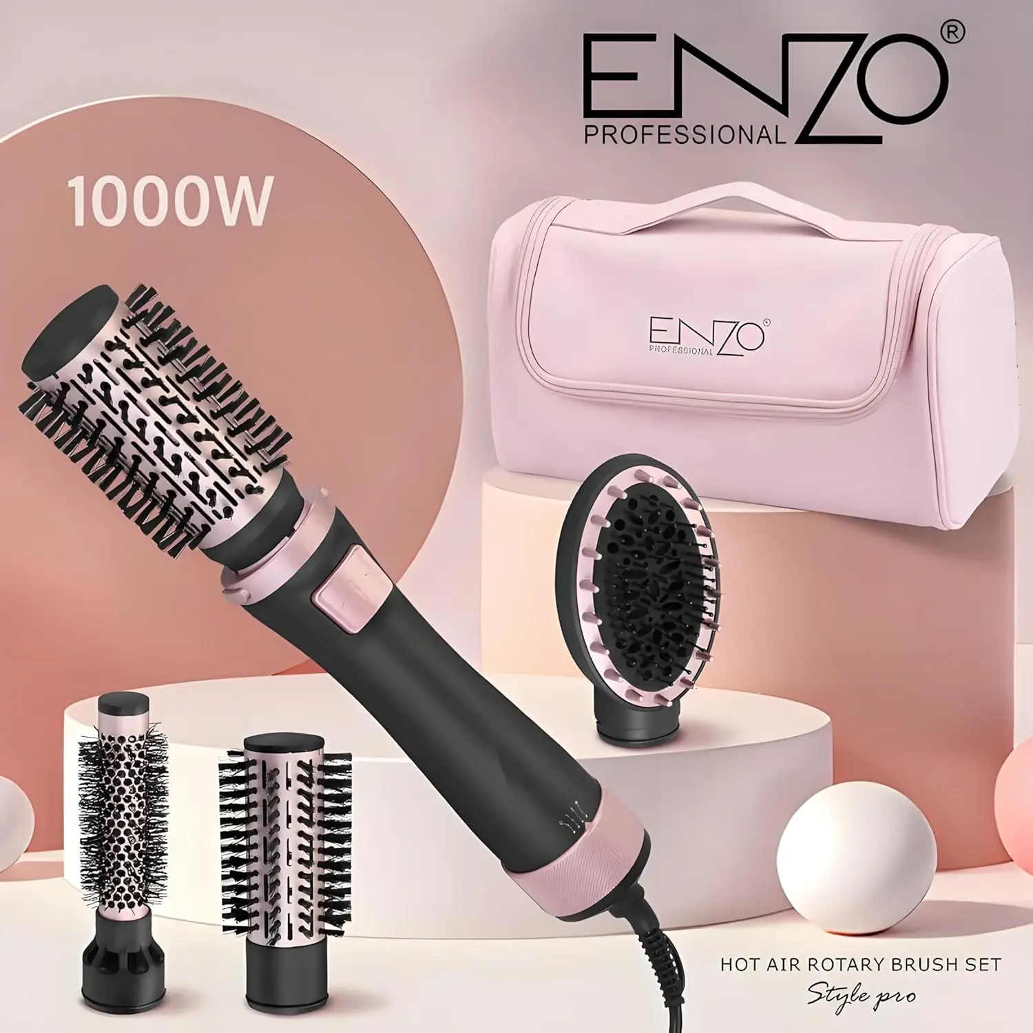 • 360° Rotating Brush: Creates volume and smooth styles.