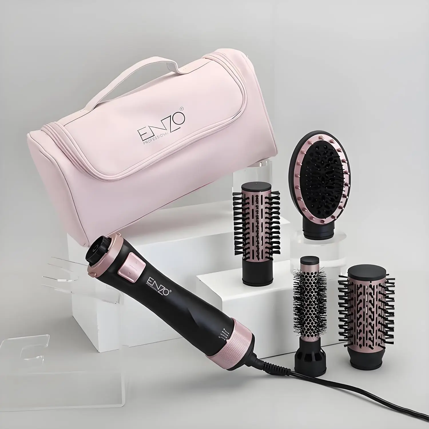 Experience salon-quality styling at home or on the go with our revolutionary 4-in-1 Hair Dryer Brush! This versatile tool combines the power of a hair dryer, straightener, curling brush, and hot air volumizer into one convenient, detachable unit. With 1000W of power and adjustable heat settings, you can achieve fast, efficient styling tailored to your specific hair type – whether you have fine, thin, thick, frizzy, or coarse hair. The rotating brush, equipped with ionic technology, releases negative ions to combat frizz, smooth cuticles, and leave your hair with lasting shine and unparalleled softness. Its portable, foldable design makes it an ideal travel companion. The foldable handle and detachable heads ensure it easily fits into your luggage, making it perfect for hotels, outdoor adventures, business trips, or even for salon professionals on the move. Designed with your safety and comfort in mind, it features an ergonomic grip, detachable brush heads for effortless cleaning, and smart heat protection to ensure confident styling every day. Say goodbye to cluttered countertops and hello to effortless, professional-looking results with our all-in-one styling solution!