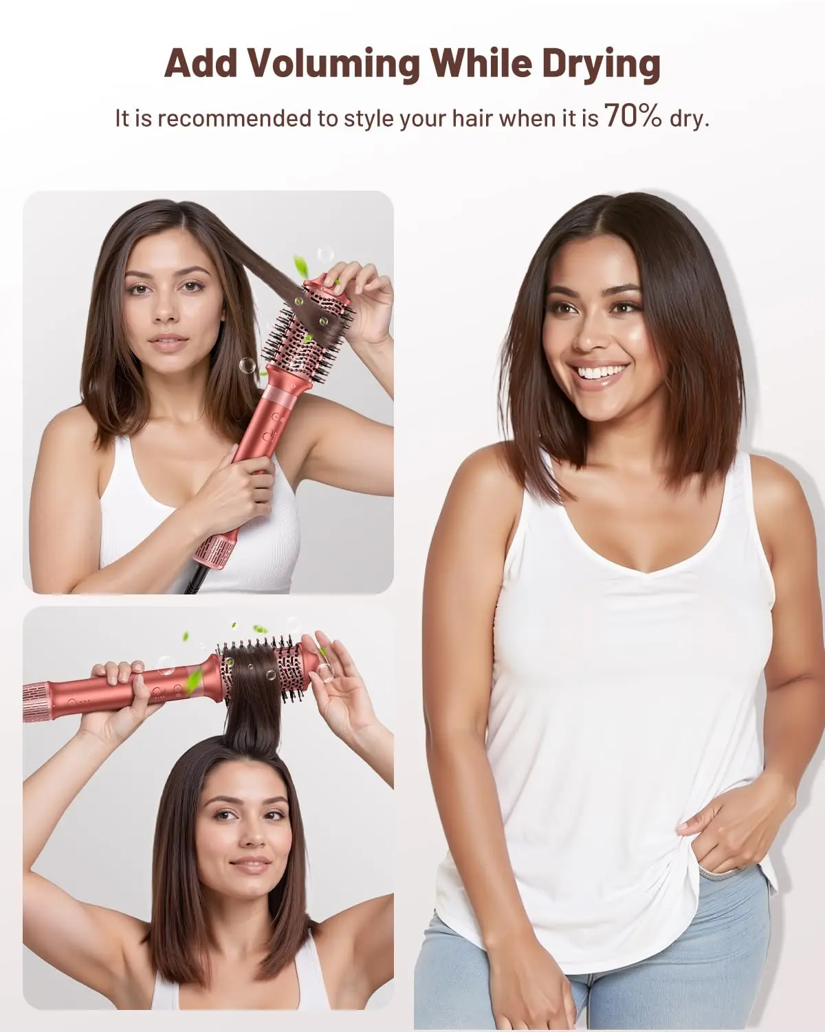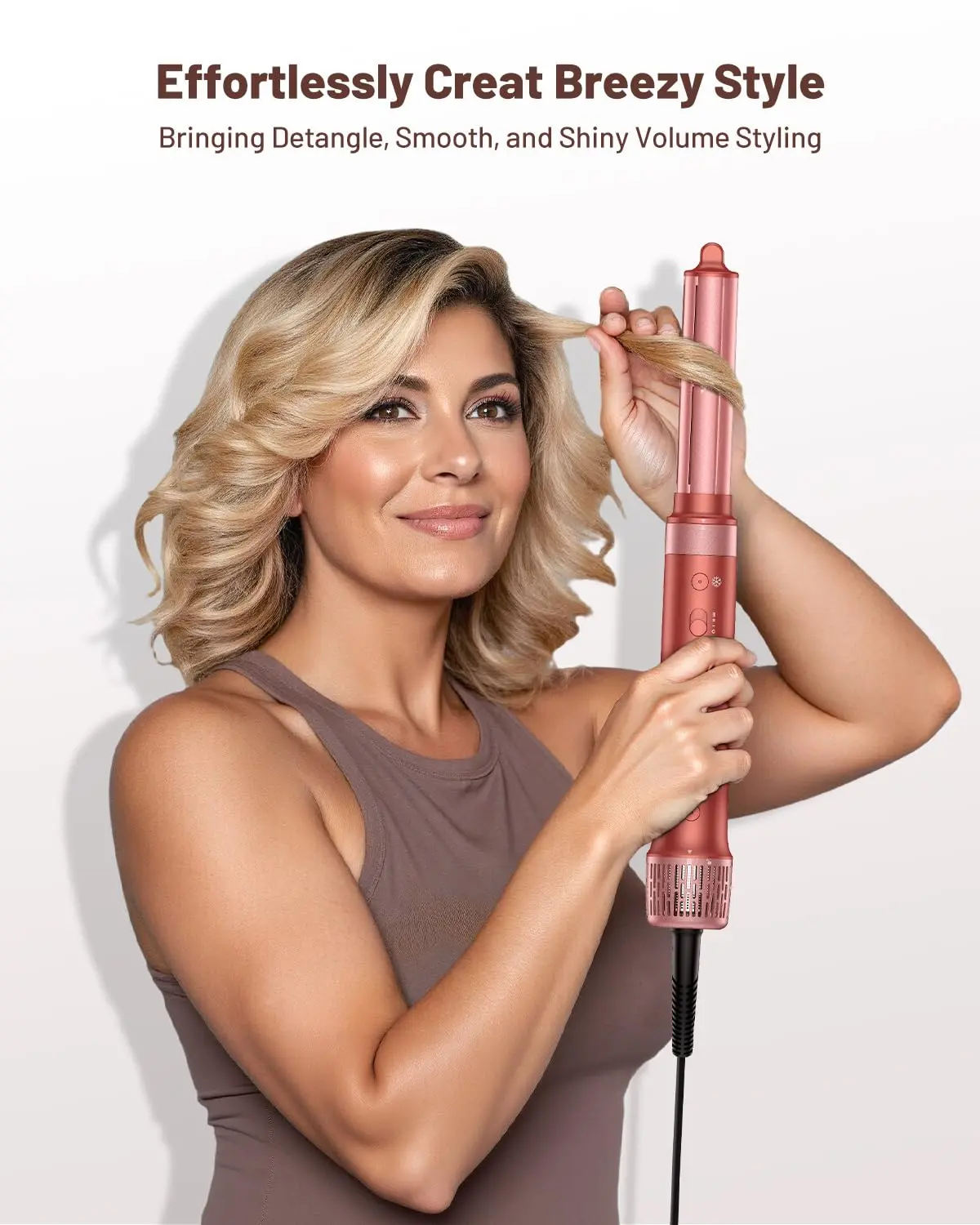• 5-in-1 multifunctional hairstyler: hair dryer, curling iron, volumizer, and straightener.