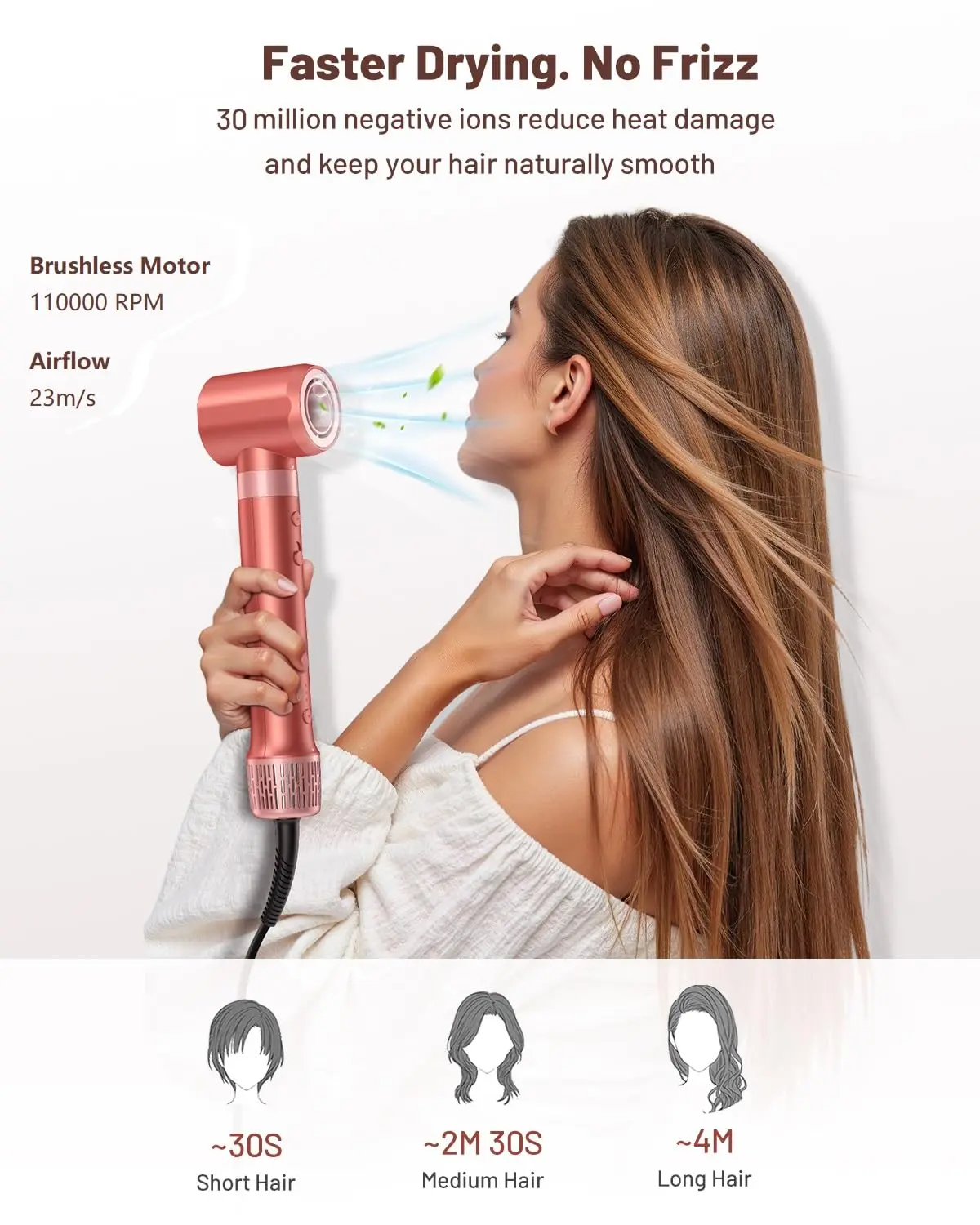 • Negative ion technology for frizz-free, shiny hair.