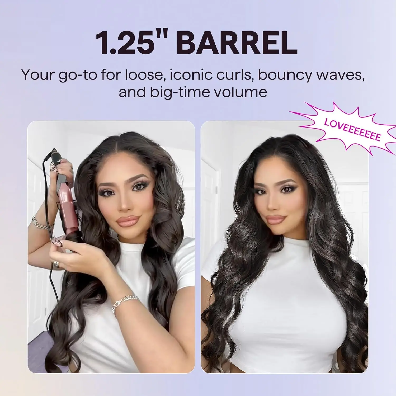 • Interchangeable Barrels: Offers 0.5”, 0.35-0.7”, 1”, 1.25” barrels and a 1.5″ curling brush.