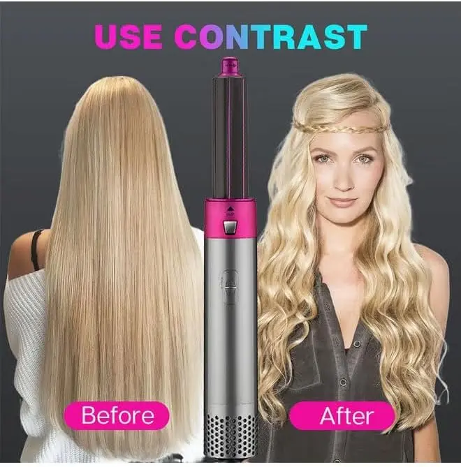 Unlock a world of effortless hairstyling with the revolutionary 5-in-1 Rotating Hair Dryer & Styler! This innovative tool combines the power of a hair dryer, straightener, comb, and curling brush into one compact and versatile device. Say goodbye to cluttered bathroom counters and hello to salon-quality results from the comfort of your own home. The unique rotating mechanism allows you to seamlessly switch between attachments, giving you complete control and making it easy to style even those hard-to-reach areas. With its efficient 20-watt motor, this styler delivers consistent performance, ensuring beautiful and long-lasting results every time. The ergonomic handle provides a comfortable grip, allowing for easy maneuvering and effortless styling. Whether you’re looking to dry, straighten, comb, or curl your hair, this 5-in-1 styler has you covered. Its compact design makes it perfect for travel, so you can always have your favorite styling tools with you. Experience the convenience and versatility of the 5-in-1 Rotating Hair Dryer & Styler and achieve your desired look with ease. Ditch the multiple styling tools and embrace this space-saving solution that will simplify your hair care routine and leave you with gorgeous, salon-worthy hair.