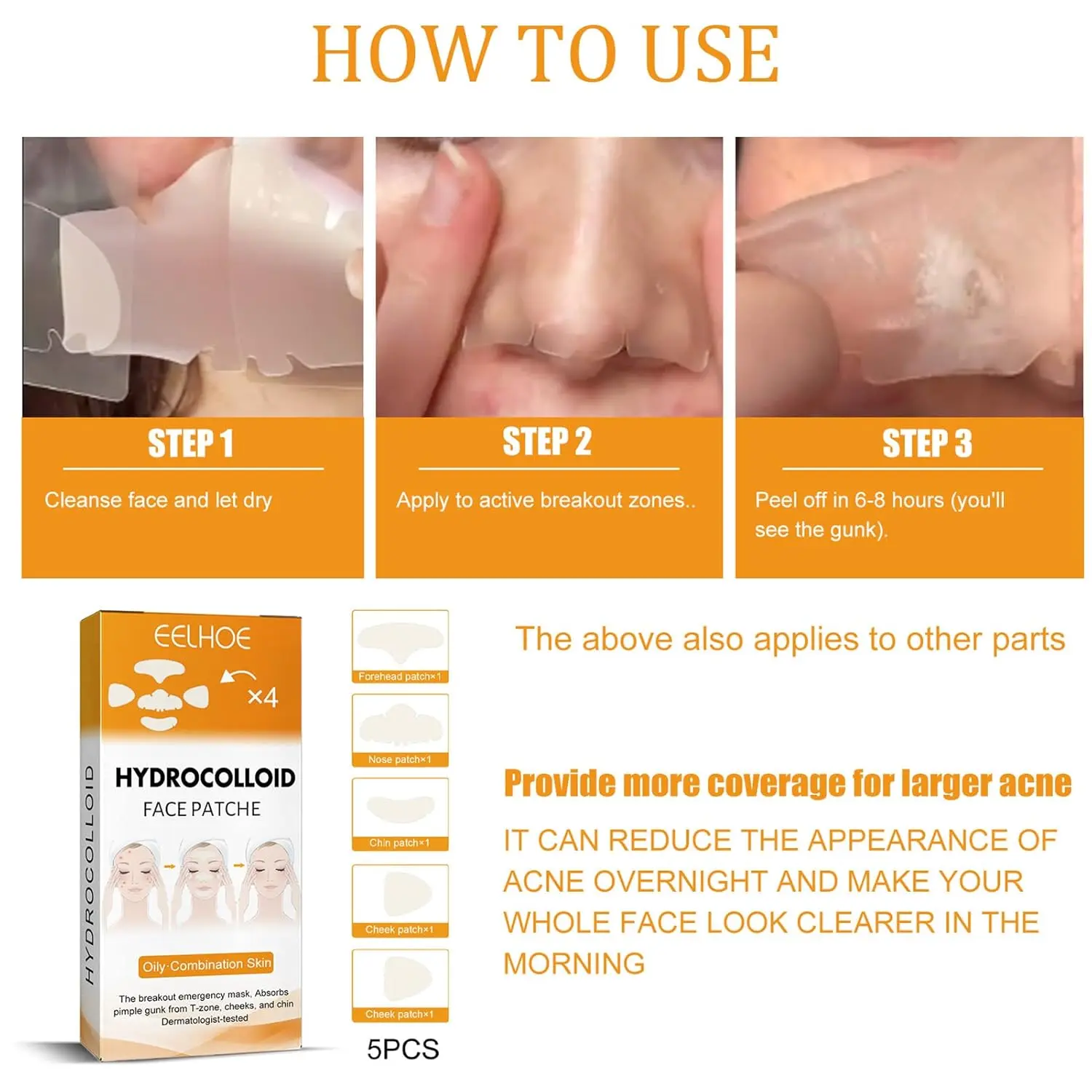 • 20 patches for targeted treatment (Forehead, Nose, Cheeks, Chin)