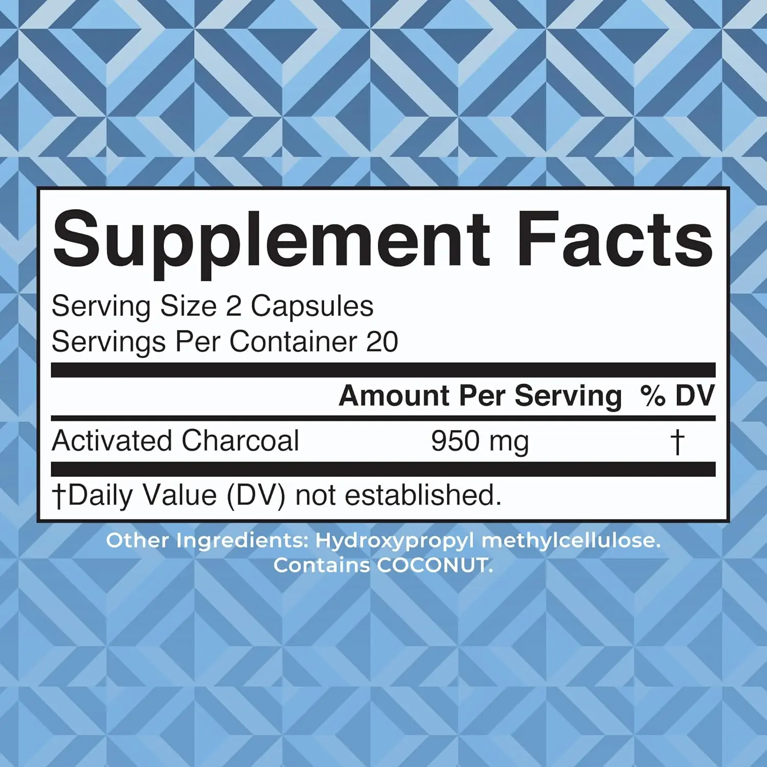 • 950 mg Activated Charcoal per serving (2 capsules)