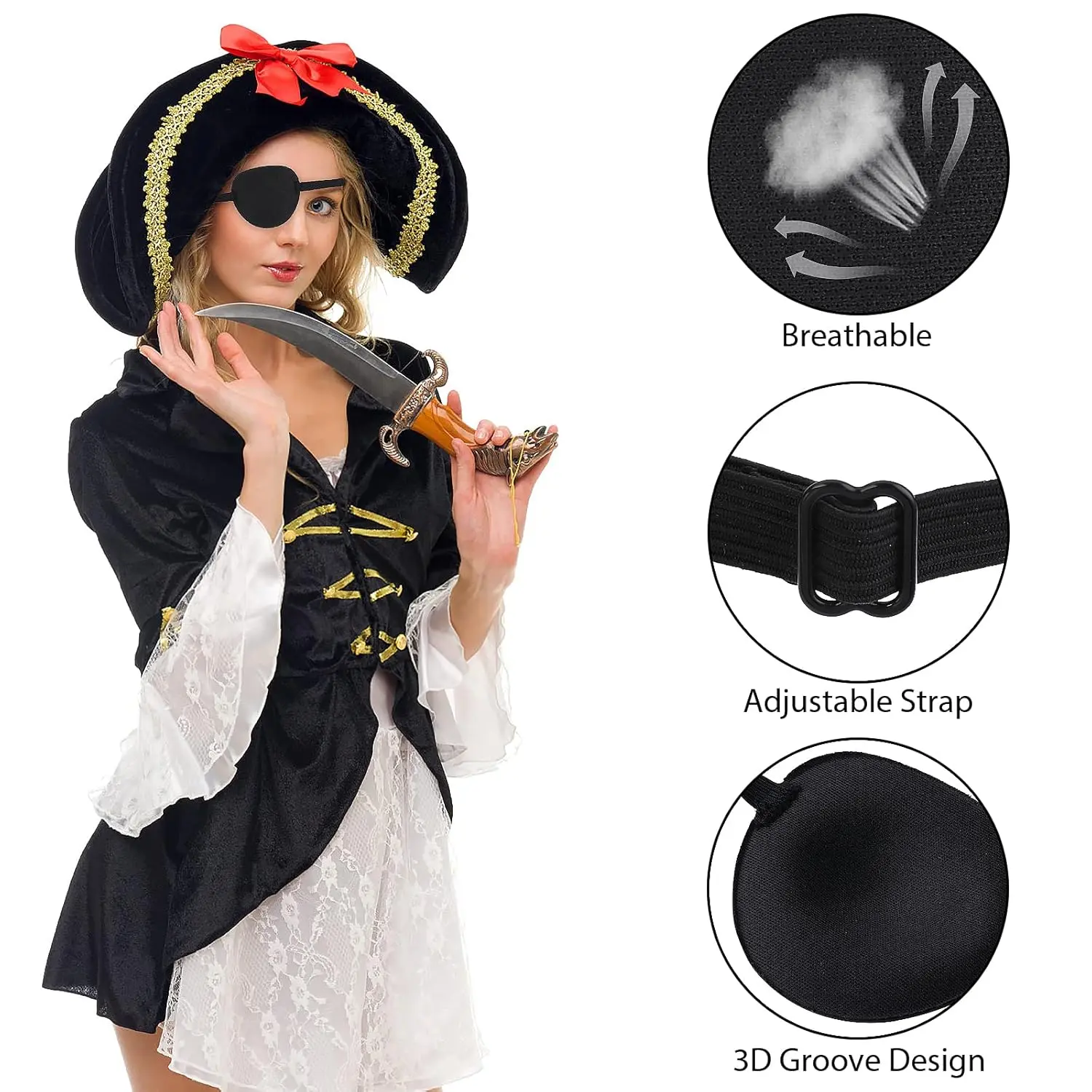 Looking for a comfortable and versatile eye patch? The Adjustable Eye Patch is perfect for adults and kids alike! This 2-piece set of Sibba eye patches provides excellent eye coverage and can be used for a variety of purposes. Whether you need it for medical reasons such as amblyopia correction, vision training, or post-surgery recovery, or for fun activities like Halloween costumes, role-playing, and masquerades, this eye patch is the perfect solution. The adjustable strap ensures a secure and comfortable fit for head circumferences of 15-23.6 inches (38-60 cm), making it suitable for both adults and children. The thick 0.28-inch (0.7 cm) design effectively blocks almost all light, providing optimal eye protection. It’s designed for either the left or right eye and can be washed and reused. Made from soft, breathable sponge material with a skin-friendly surface, this eye patch features a 3D groove design that prevents pressure on the eye, ensuring comfortable wear even for extended periods. Get your 2-piece Adjustable Eye Patch set today for reliable eye protection and versatile use! Perfect for daily use, replacement, or gifting to family and friends!