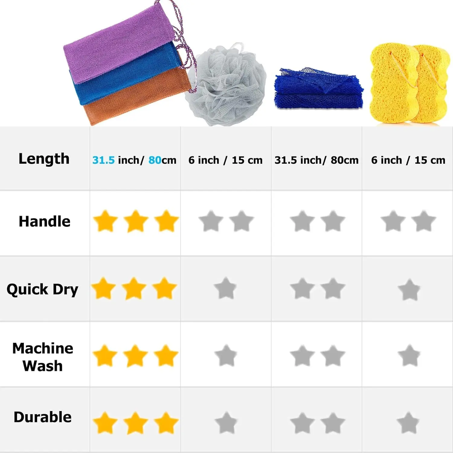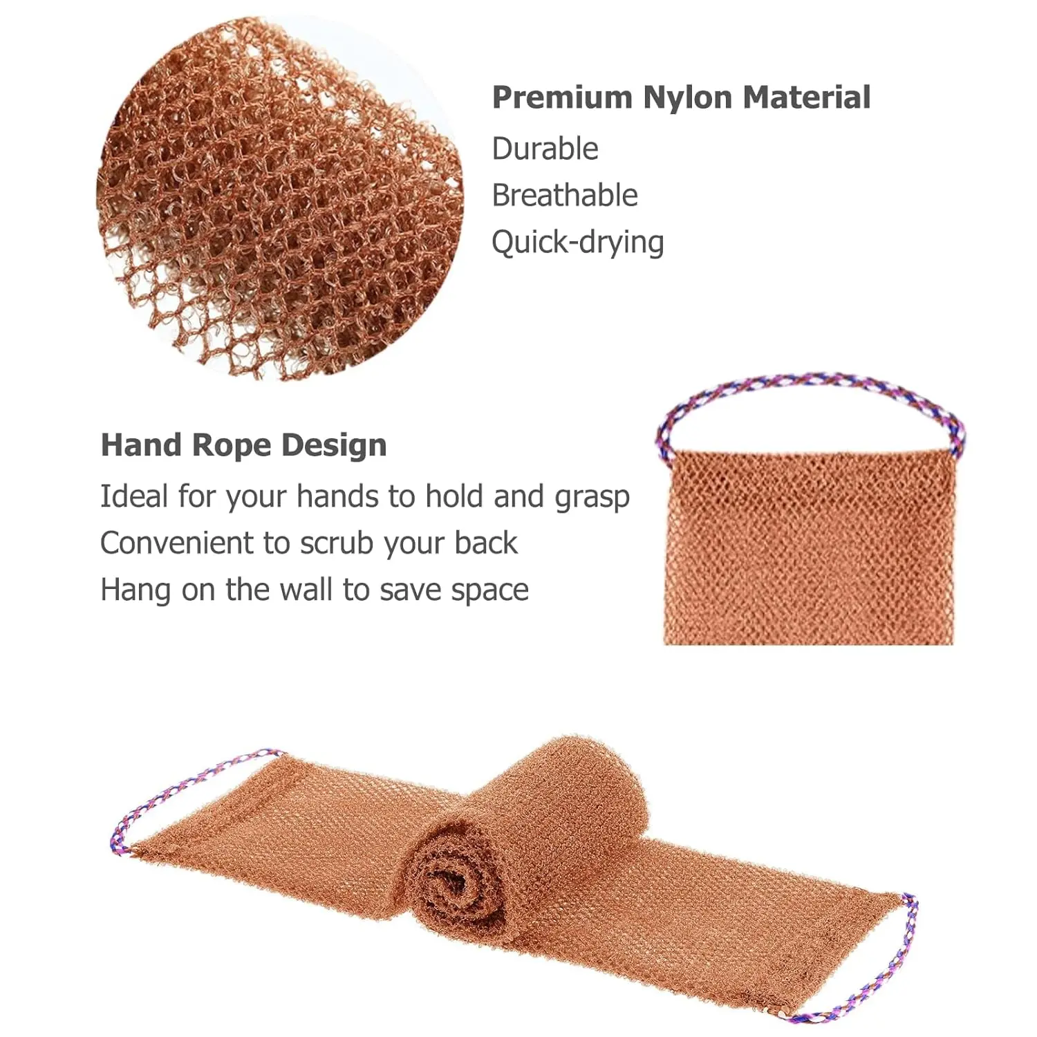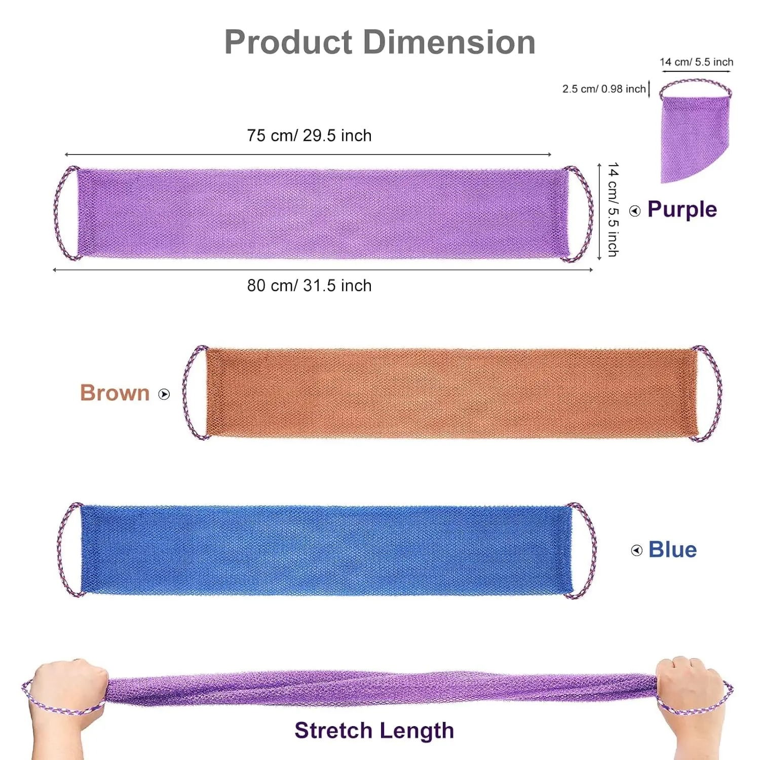 Experience the ultimate clean and invigorated skin with our African Exfoliating Bath Net Sponge Set! This set includes three durable and effective exfoliating nets, perfect for sharing with family or keeping as replacements. Each package contains three vibrant colors: purple, blue, and coffee, adding a touch of vibrancy to your shower routine. Crafted from reliable, double-thickened nylon, these African exfoliating nets are designed for both effectiveness and longevity. The soft yet sturdy material gently buffs away dead skin cells, dirt, and impurities, leaving your skin feeling smooth, refreshed, and revitalized. Our nets are quick-drying and easy to clean, ensuring a hygienic and long-lasting addition to your bath essentials. Featuring a convenient hand rope design, these nets make reaching and scrubbing your back effortless. The ropes provide a secure grip, allowing you to apply the perfect amount of pressure for a thorough exfoliation. After use, simply hang the net to dry, saving space and keeping your bathroom tidy. The open-weave design of these long net shower sponges creates a rich lather, maximizing the effectiveness of your favorite soaps and body washes. The gentle texture is suitable for most skin types, providing a comfortable and enjoyable bathing experience. Note: To ensure optimal performance and prevent color bleeding, please soak the product in heated water for 15 minutes before the first use. A slight initial fading is normal and will not affect the net’s effectiveness. Upgrade your shower routine with our African Exfoliating Bath Net Sponge Set and discover the secret to smoother, healthier-looking skin! Enjoy the benefits of gentle yet effective exfoliation in the comfort of your own home.