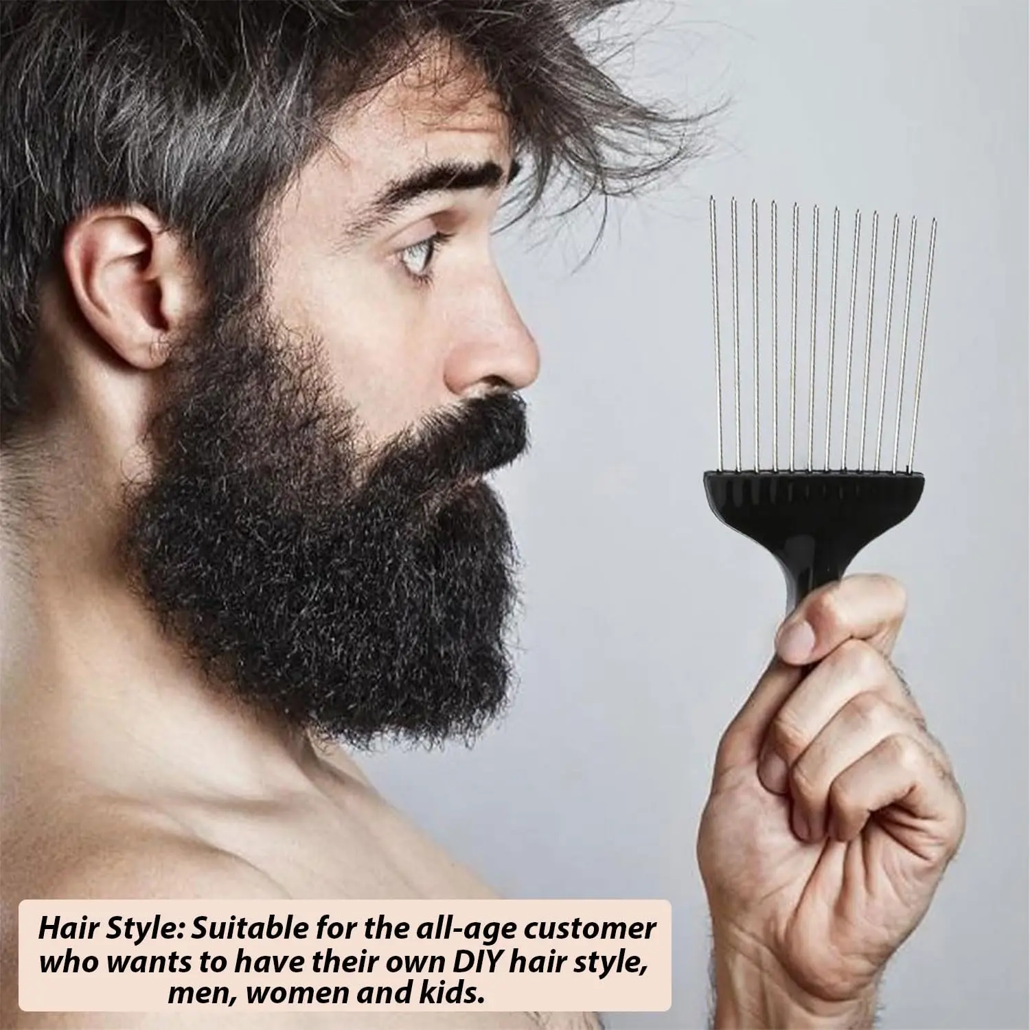 Create stunning Afros & curly styles easily with this metal hair pick. Durable, washable, & portable. Perfect for DIY hairstyles for all ages!
