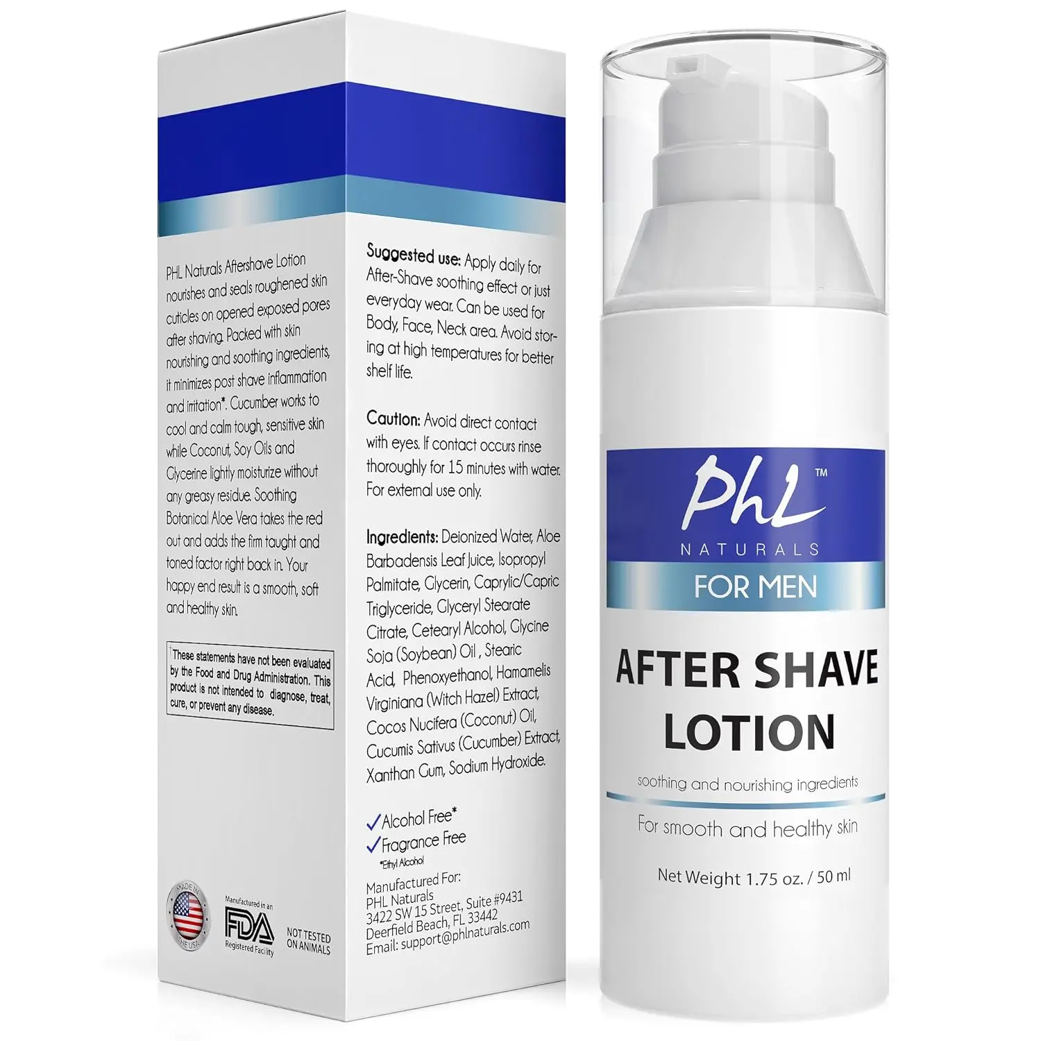 Crafted with natural, skin-loving ingredients, our lotion is proudly Made in the USA. We utilize the power of aloe vera, witch hazel, glycerin, soy oil, coconut oil, and cucumber to naturally repair and replenish your skin after each shave.