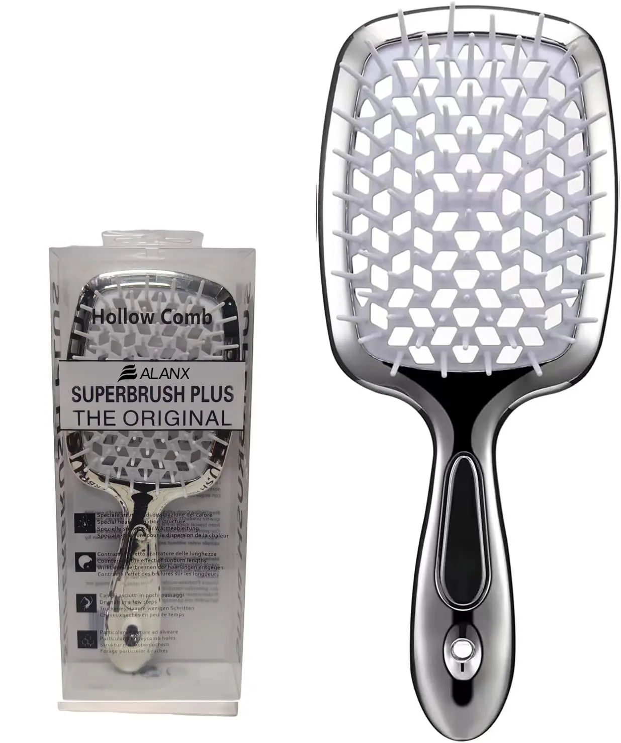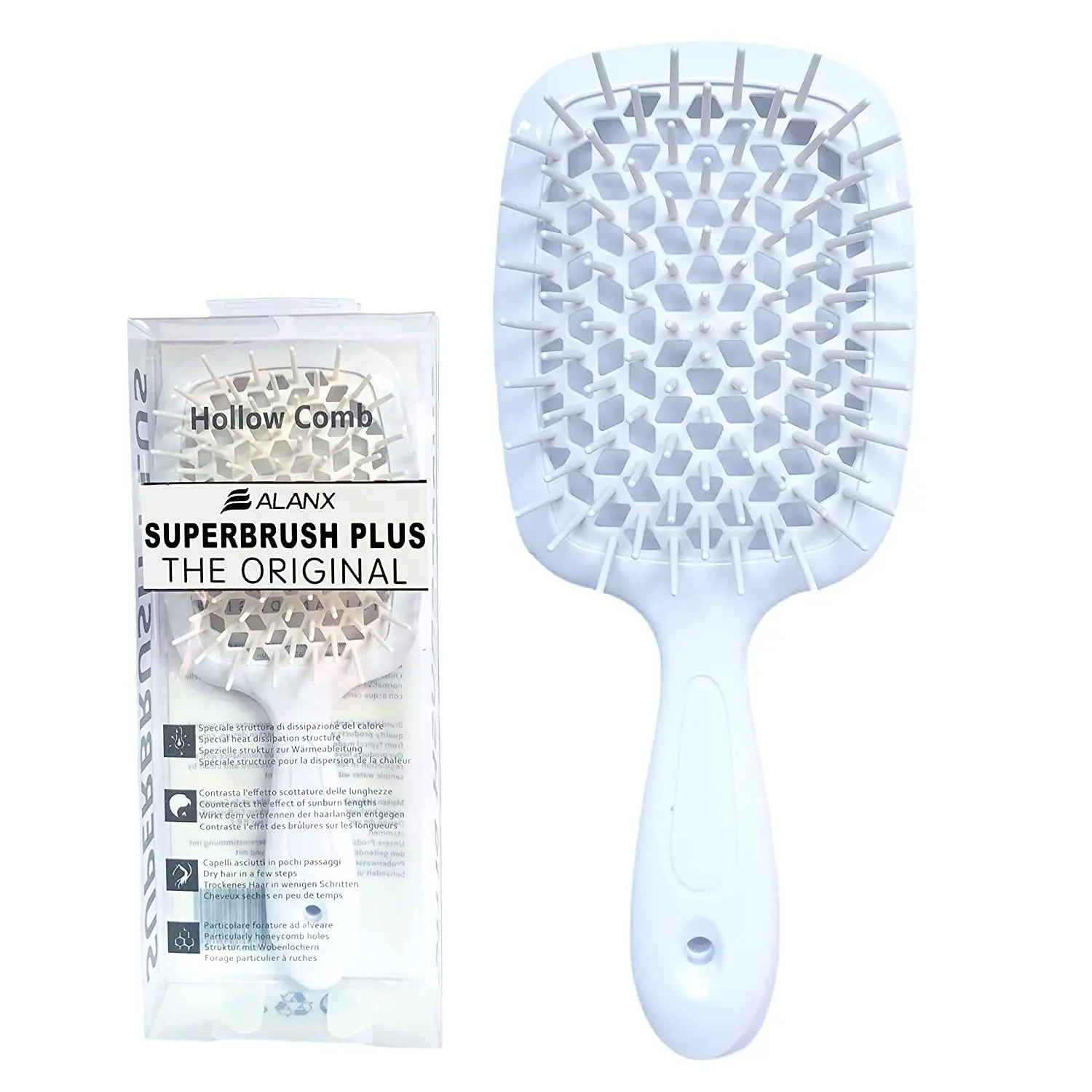 Tired of painful detangling and brushes that are impossible to clean? The ALANX Detangler Brush is your solution for effortlessly smooth, healthy hair! Designed for both wet and dry hair, this brush glides through knots without pulling or breaking strands. Crafted from high-quality, durable ABS material, it’s lightweight, non-toxic, and built to last. The unique honeycomb mesh design not only fits comfortably against your scalp but also allows for optimal airflow, making it perfect for use in the shower and preventing product buildup. The intelligently spaced bristles and flexible design mean no more painful snags. The bristles gently bend and adjust, unraveling knots with ease and promoting blood circulation to the scalp. Regular use can improve hair texture, leaving it softer, smoother, and healthier. Cleaning is a breeze, simply rinse under water to remove any residue. The ergonomically designed handle ensures a comfortable and secure grip, making your detangling routine effortless. Experience the difference with ALANX – the detangler brush that cares for your hair and scalp. The brush is designed with reasonable tooth pitch. Using layered fast knot development, comb teeth automatically bending. Regular combing of hair can stimulate nerve endings, regulate cranial nerves, relieve head tension, soothe the body and mind, promote blood circulation, reduce hair loss.