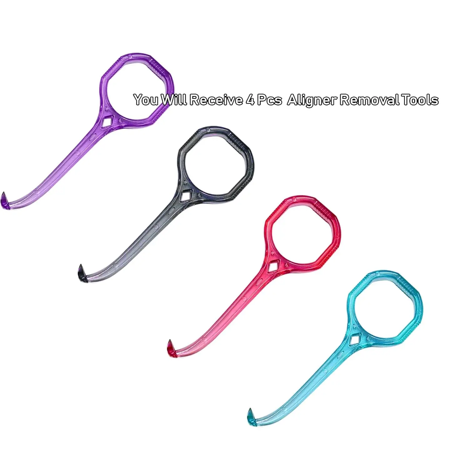 The Aligner Removal Tool is a must-have accessory for anyone undergoing clear aligner treatment. Designed with the average person’s dental structure in mind, this tool allows for comfortable and effortless aligner removal. Say goodbye to struggling and potential damage to your teeth and gums. Crafted from food-grade plastic, our removal tool is not only safe but also incredibly durable, ensuring long-lasting use. Its smooth surface gently interacts with your gums, preventing irritation and discomfort. Cleaning is a breeze – simply immerse it in boiling water for disinfection or wipe it down with alcohol. The ergonomic grip ring comfortably accommodates any finger size, while the non-slip outer casing provides a secure hold. Its compact size (7.8X2.6CM) makes it incredibly portable, fitting easily into your bag or pocket, so you can take it with you wherever you go – travel, work, school, or outdoor adventures. This package includes 4 aligner removal tools, ensuring you always have one on hand when you need it. The Aligner Removal Tool ensures aligner removal is as painless and convenient as possible, allowing you to maintain your oral hygiene and continue your treatment without any unnecessary hassle. You no longer have to struggle with removing your aligners.