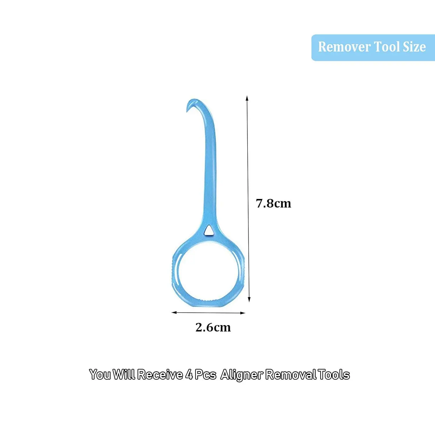 Struggling to remove your aligners? Our Aligner Removal Tool is the perfect solution! Designed to comfortably and easily remove invisible braces, this tool eliminates the worry of hurting your teeth or introducing bacteria into your mouth. Crafted from food-grade plastic, it’s safe for your teeth and built to last. The smooth surface of the aligner hook ensures no damage to your gums during removal. For hygiene, it can be disinfected in boiling water or wiped with alcohol. The ergonomic grip ring is designed to fit any finger, and the non-slip outer casing provides a secure hold. Its compact size (7.8X2.6CM) makes it lightweight and portable, so you can easily take it with you wherever you go. This package includes 4 aligner removal tools, ensuring you always have one on hand! This tool is suitable and designed according to most people and human teeth.