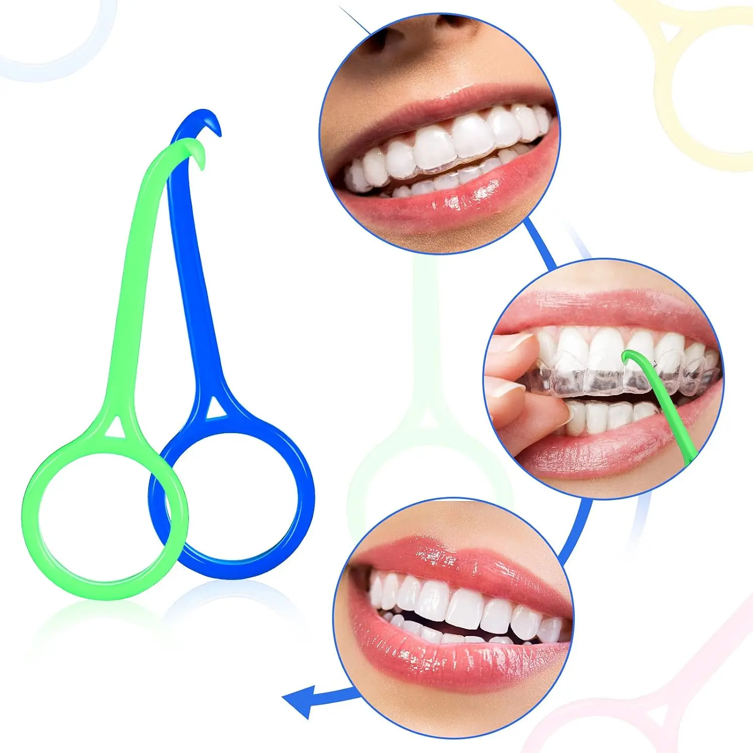Struggling with removing your clear aligners? Our Aligner Removal Tool Kit is here to make your life easier and more hygienic! This comprehensive kit includes 5 aligner removal tools in a vibrant array of colors: white, yellow, pink, green, and blue. With a color for every day of the work week (or just to match your mood!), you’ll always have a tool handy. The sufficient quantity ensures you’re covered at home, at work, or on the go. These aligner removal tools keep your hands away from your mouth, promoting a healthier and safer cleaning method for your aligners and your teeth. Made from safe and reliable ABS plastic, these tools are lightweight and easy to grip. The interdental brush head is crafted from soft, comfortable silica gel, ensuring a gentle and effective clean. Our aligner removers are designed to be gentle on your teeth, preventing damage, and their compact size makes them incredibly easy to carry and store. Say goodbye to struggling with aligner removal and hello to a healthier, more convenient oral care routine. Perfect for travel, work, school, and outdoor activities, this kit is an essential accessory for anyone undergoing orthodontic treatment with clear aligners. The non-slip design of both the aligner chewies and removal tools ensures a comfortable and secure grip, making clear aligner removal effective and intuitive. With universal colors, they’re suitable for both men and women. Looking for a thoughtful and practical gift? The aligner removal tool and brush cleaner make an excellent choice for anyone with braces or those who are particularly attentive to their oral hygiene. Your kindness and attentiveness will be greatly appreciated.