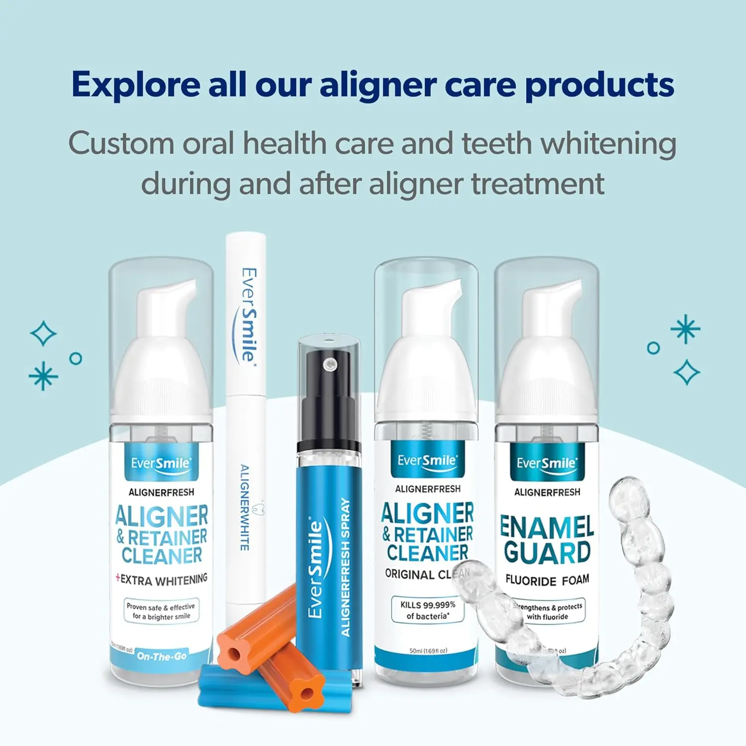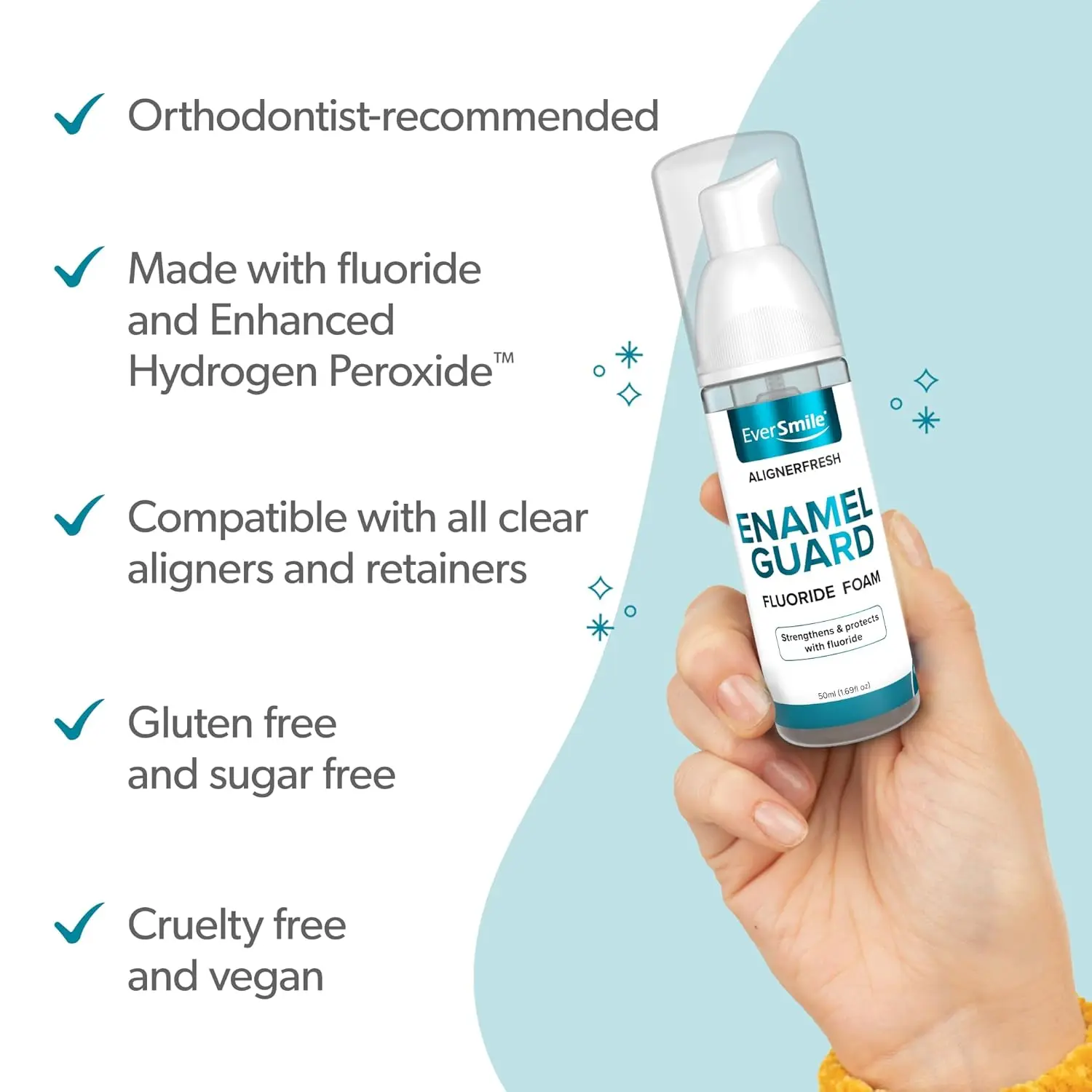 AlignerFresh Enamel Guard: Cleaner aligners, fresher breath, whiter teeth. Protects enamel, prevents cavities & gingivitis. Convenient foam, no rinsing!