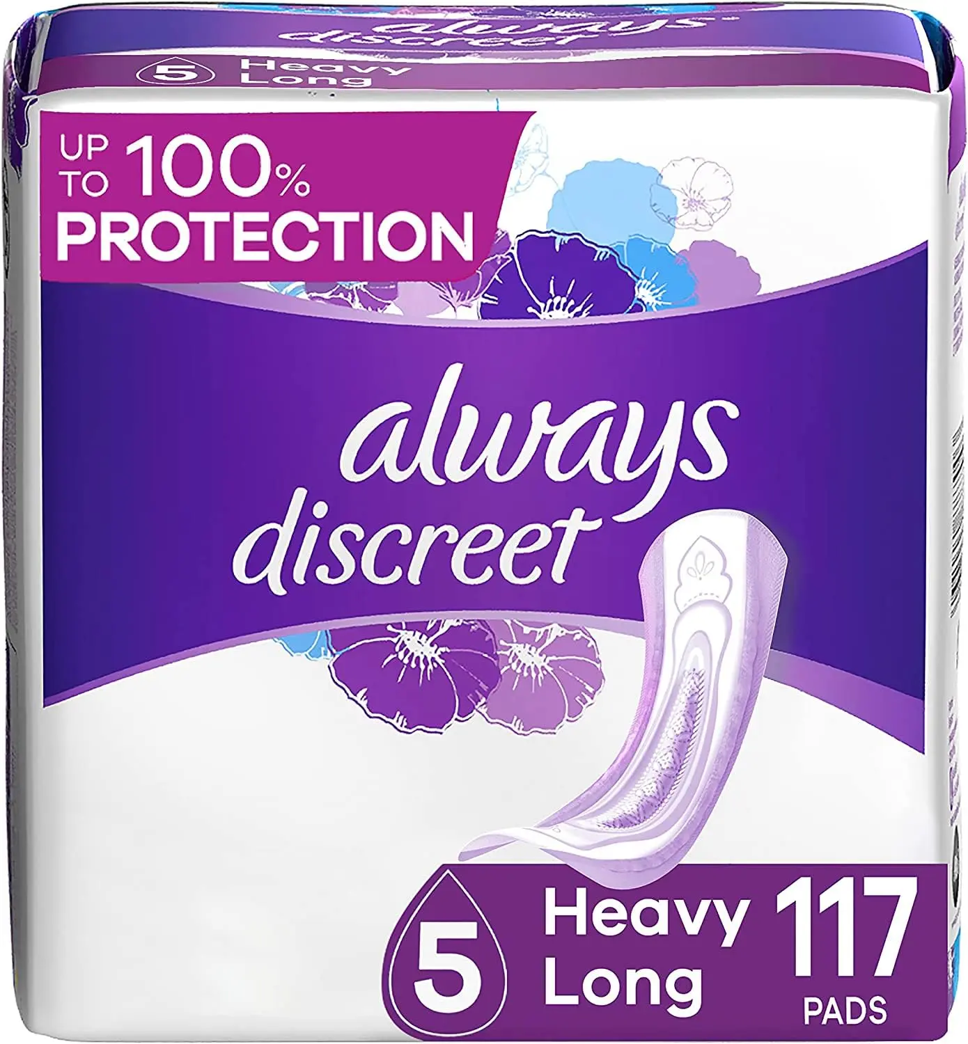 Experience ultimate protection and confidence with Always Discreet Pads, Maximum Absorbency. Designed for women who experience bladder leaks or incontinence, these pads offer superior absorbency to keep you dry and comfortable all day long. The innovative LeakGuard Core quickly absorbs fluids and locks away wetness, while the OdorLock Technology neutralizes odors for hours of discreet protection. Always Discreet Pads are thin and flexible, conforming to your body for a comfortable fit that moves with you. The soft, cotton-like material feels gentle against your skin, preventing irritation and discomfort. Each pad is individually wrapped for convenient portability and hygiene. Don’t let bladder leaks hold you back – trust Always Discreet Pads to provide the discreet protection you need to live life to the fullest. This bulk pack contains 117 pads, ensuring you have an ample supply for long-lasting peace of mind. Get back to enjoying your favorite activities without worry, knowing you’re protected by Always Discreet.