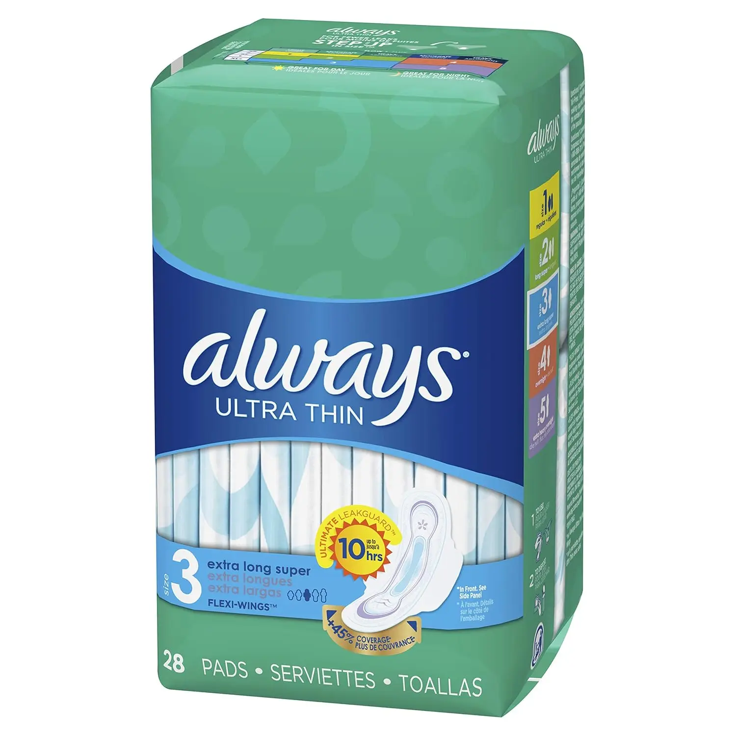 Experience the ultimate protection and comfort with Always Ultra Thin Regular Pads. This bulk pack of 96 pads ensures you’re always prepared. Designed with advanced leak-guard technology, these pads absorb fluids in seconds, locking away wetness and neutralizing odors for hours. Feel confident and fresh throughout your day, no matter what activities you’re pursuing. The ultra-thin design offers discreet protection that moves with you, providing a comfortable and barely-there feel. Forget bulky, uncomfortable pads – Always Ultra Thin Regular Pads provide superior protection without sacrificing comfort. Each pad is individually wrapped for hygiene and portability. Whether you’re at work, at the gym, or out with friends, you can trust Always Ultra Thin Regular Pads to keep you feeling clean, dry, and confident. Stock up now and enjoy long-lasting protection that you can rely on. Don’t let leaks and odors disrupt your day; choose Always Ultra Thin for unbeatable comfort and peace of mind. Enjoy the security of knowing you have reliable protection without the bulk, allowing you to focus on what matters most. These pads are designed to conform to your body’s shape, providing a secure and comfortable fit all day long. Choose Always Ultra Thin Regular Pads for a worry-free experience.