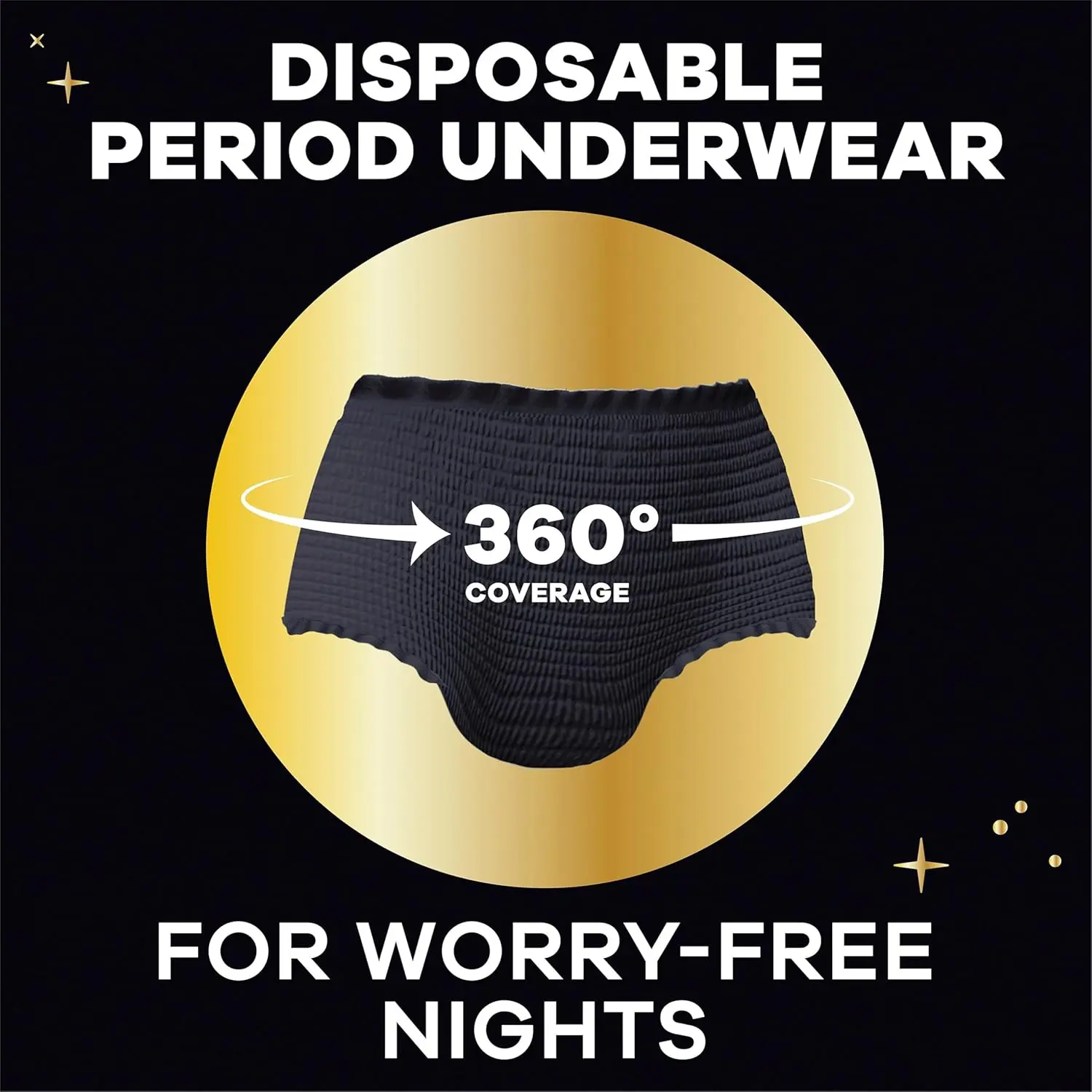 Experience unparalleled protection and comfort during your period nights with Always ZZZ Overnight Disposable Period Underwear in Size LG. Finally, enjoy leak-free sleep without the worry of stains or discomfort. Designed with revolutionary 360° coverage, these period underwear provide all-around protection, ensuring you can move freely and sleep soundly. No more waking up to check for leaks or feeling restricted by bulky pads. Always ZZZ Overnight Underwear eliminates the need for backup protection, offering complete peace of mind throughout the night. The advanced absorbent core is designed to hold as much as five Always Ultra Thin pads, providing maximum protection even during your heaviest flow. The innovative design ensures quick absorption, keeping you feeling dry and comfortable all night long. Say goodbye to bulky pads and hello to the comfort of regular underwear. Always ZZZ Overnight Underwear fits and feels just like your favorite everyday underwear, allowing you to sleep comfortably and naturally. The soft, breathable material ensures a comfortable fit, while the discreet design ensures you feel confident and secure. The flexible waistband and leg openings move with you, preventing leaks and providing a secure fit. No more restless nights spent worrying about leaks – with Always ZZZ Overnight Underwear, you can finally sleep soundly and wake up feeling refreshed. These disposable period underwear are easy to use and dispose of, making them a convenient and hygienic option for nighttime protection. Simply slip them on like regular underwear before bed and dispose of them in the trash in the morning. Always ZZZ Overnight Underwear is a game-changer for period nights, providing unbeatable protection, comfort, and convenience. Experience the difference and say goodbye to period-related sleep disruptions. Enjoy leak-free nights and wake up feeling confident and refreshed with Always ZZZ Overnight Disposable Period Underwear.