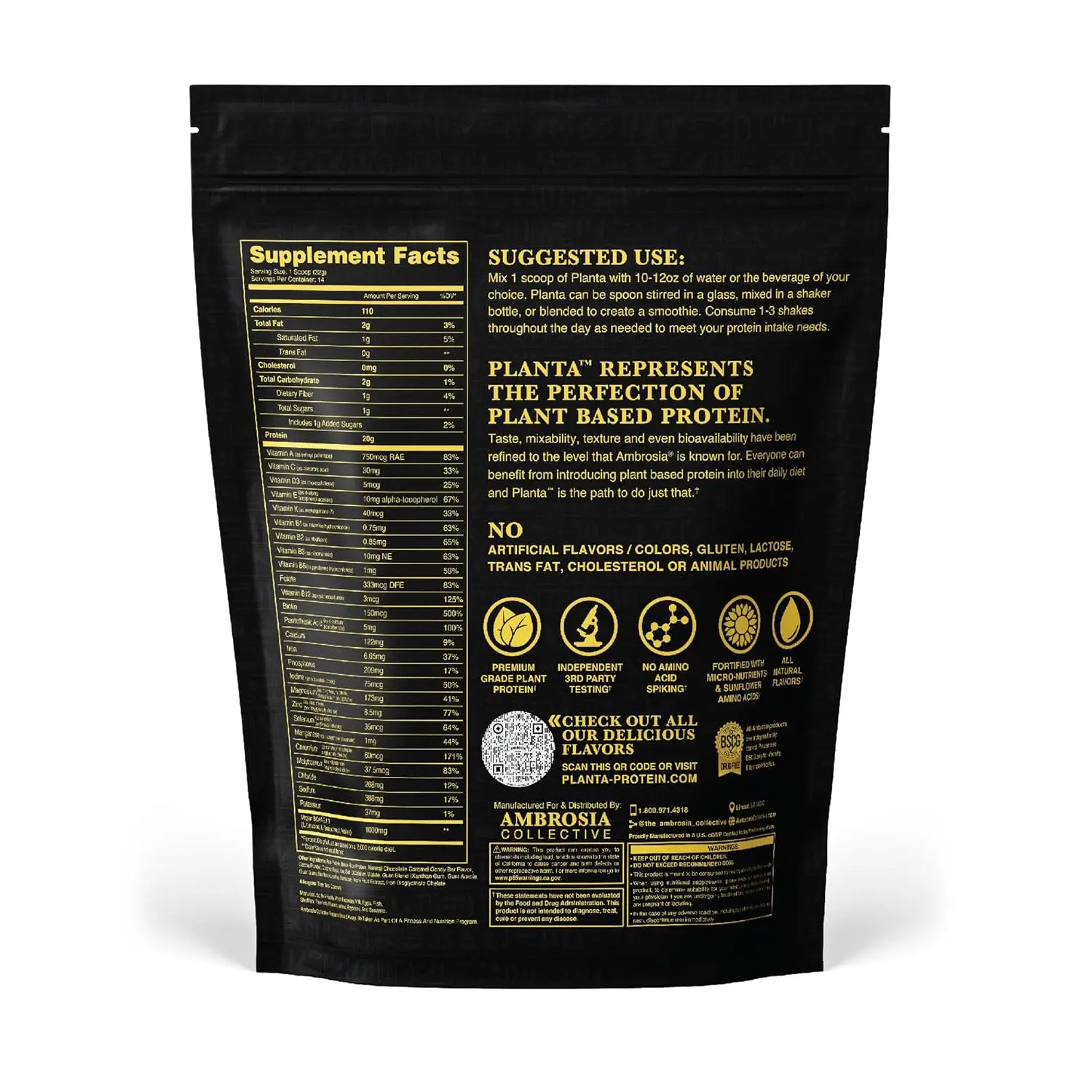 Ambrosia Planta Protein is the ultimate plant-based protein powder for anyone seeking a healthy and delicious way to boost their protein intake. Crafted with a meticulous attention to detail, Ambrosia has refined Planta’s taste, mixability, texture, and bioavailability to meet the highest standards. Whether you’re vegan, lactose intolerant, or simply looking to incorporate more plant-based options into your diet, Planta offers a fantastic solution. It’s made with a blend of brown rice and pea protein, providing a complete amino acid profile essential for muscle recovery and growth. Unlike other BCAAs derived from animal sources, Planta utilizes SunBCAA amino acids sourced from fermented sunflowers, making it entirely vegan-friendly. Its gourmet flavors will make you look forward to your post-workout protein shake. Say goodbye to chalky, unpleasant protein powders and hello to a truly enjoyable and effective supplement. Ambrosia Planta Protein is keto-friendly, soy-free, and contains no artificial flavors or colors. Incorporate Planta into your daily routine and experience the difference a premium plant-based protein can make. It’s the perfect choice for fitness enthusiasts, bodybuilders, and anyone wanting to enhance their overall well-being. With Ambrosia Planta, you don’t have to compromise on taste or quality to meet your dietary needs. Fuel your body with the power of plants and unlock your full potential.