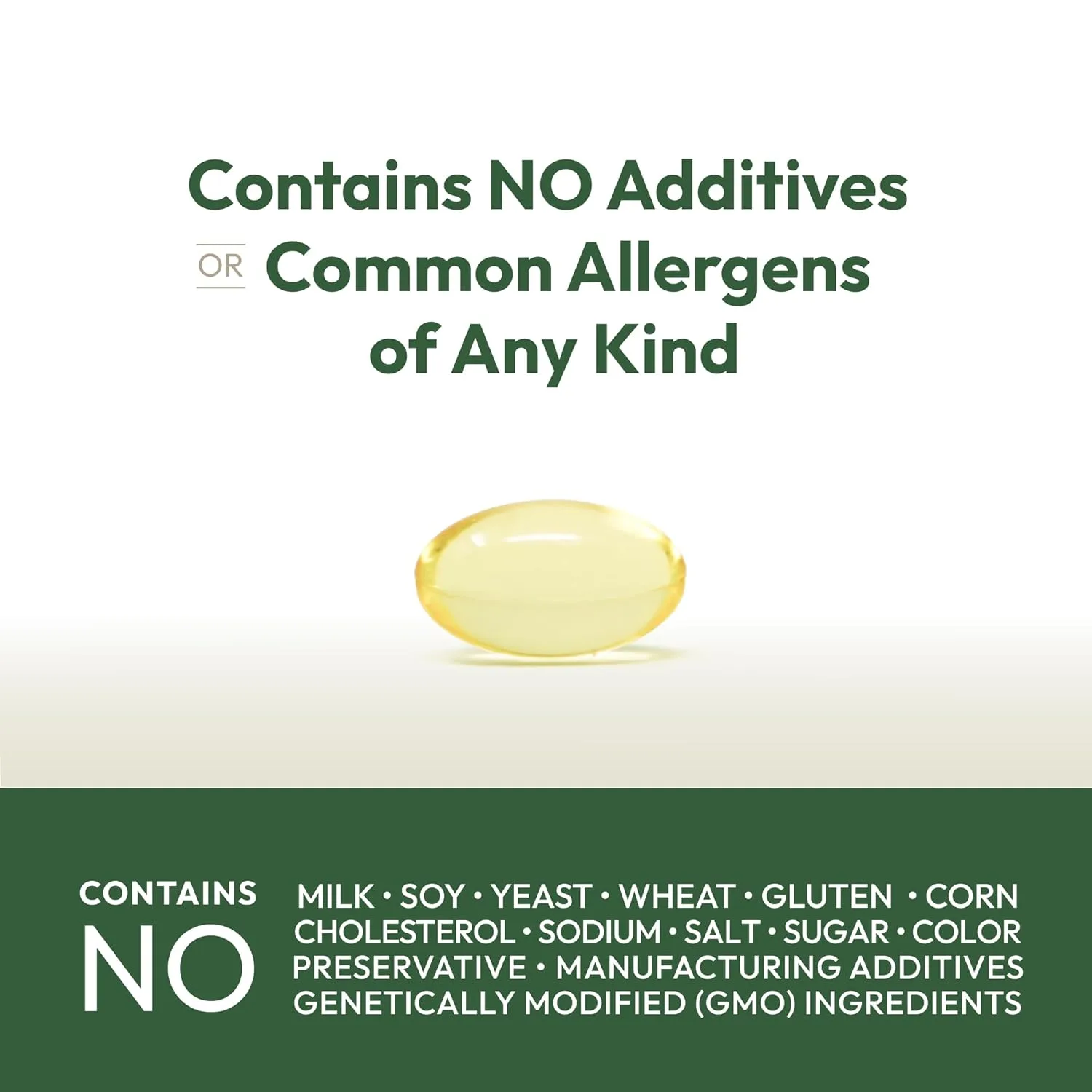 • Free of milk/dairy, gluten, soy, yeast, corn, wheat, sodium, sugar, cholesterol, color, preservatives