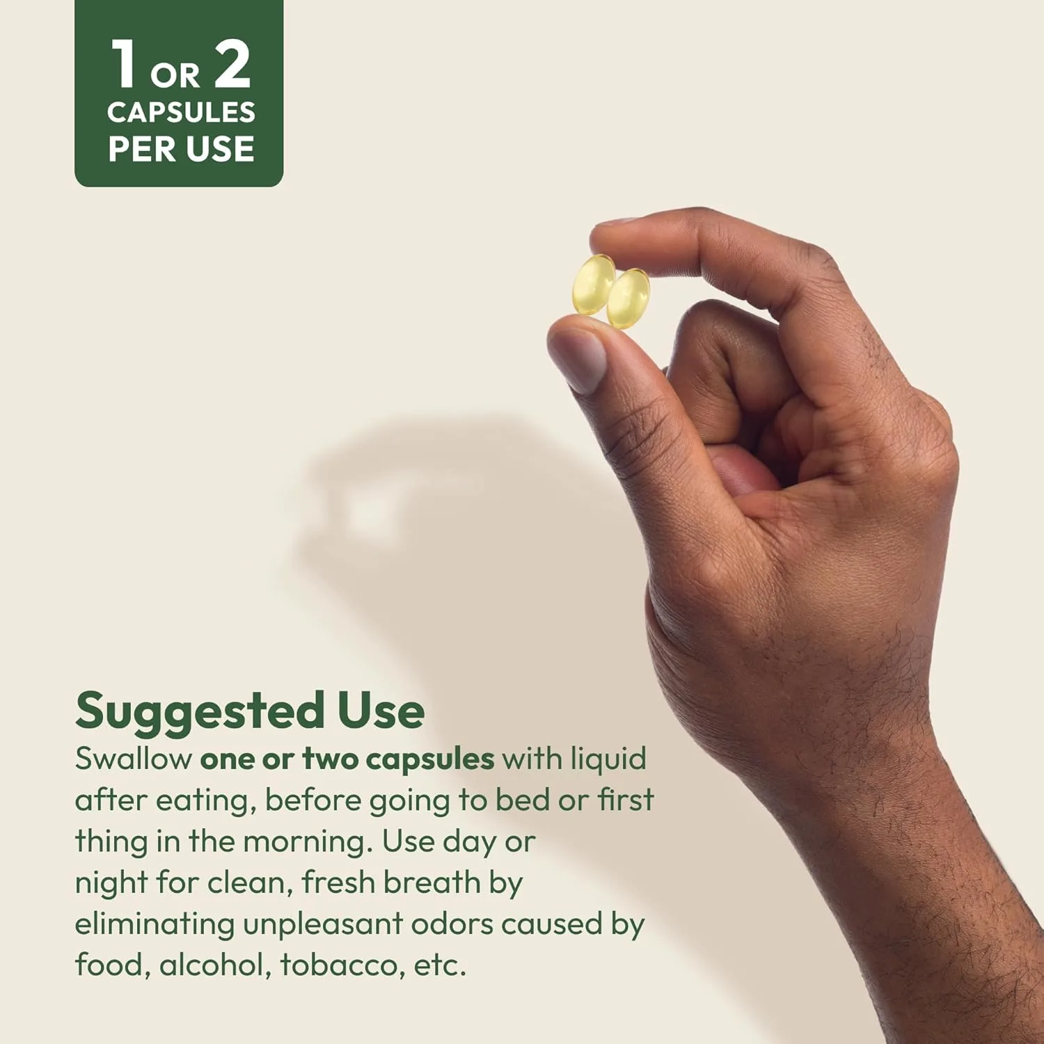• Natural breath freshener works within the digestive system