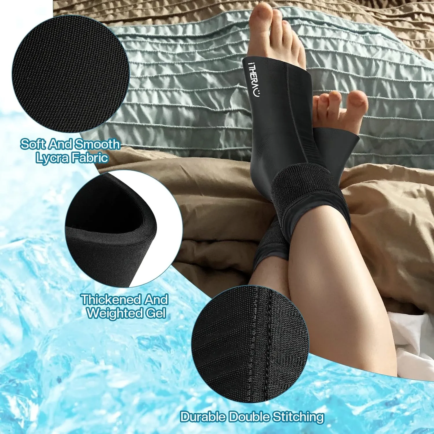 The iTHERAU Ankle Ice Pack Wrap provides 360° coverage for pain relief and faster recovery. Reusable, flexible design allows free movement while icing injuries like plantar fasciitis.