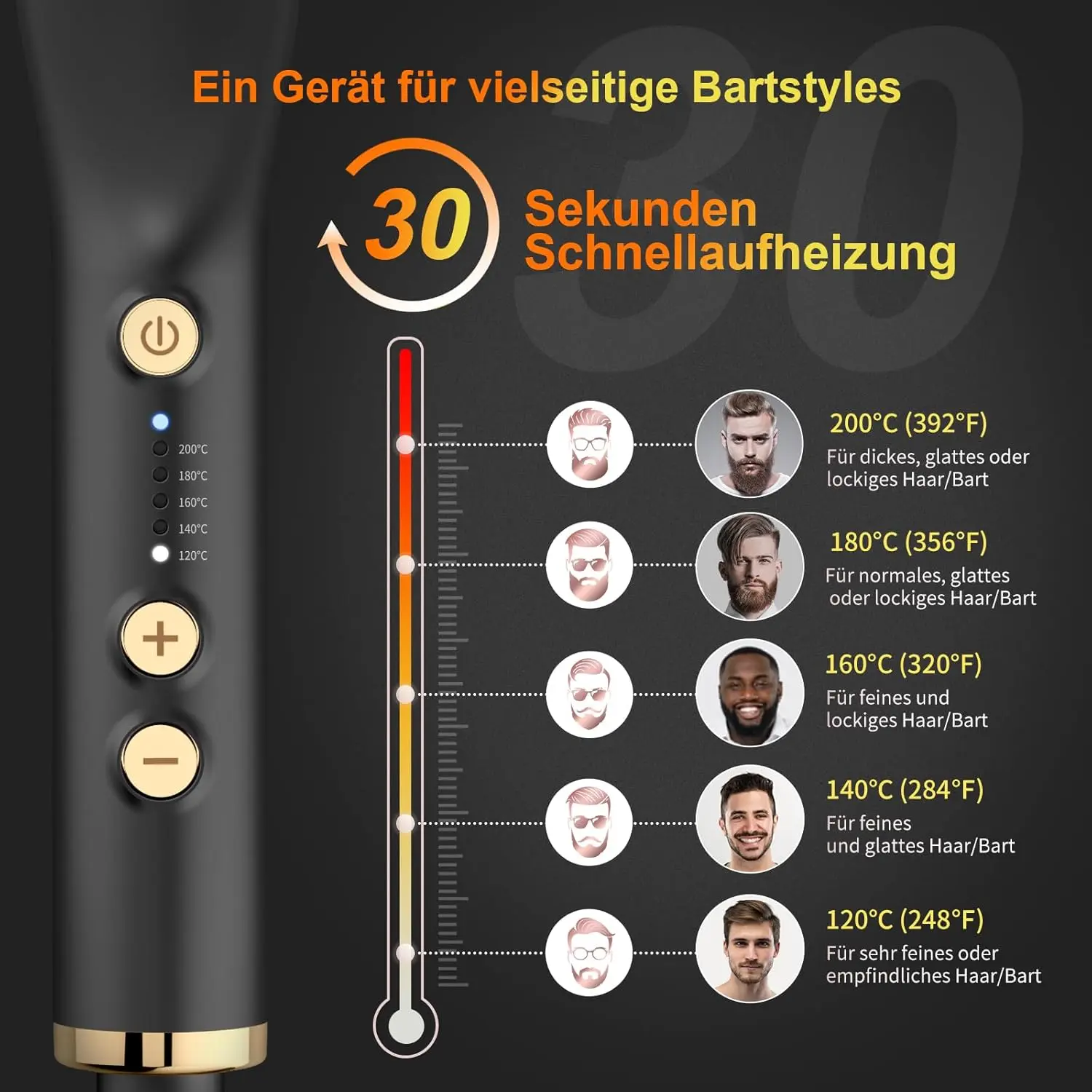 • Temperature Settings: 5 levels (120-200°C)