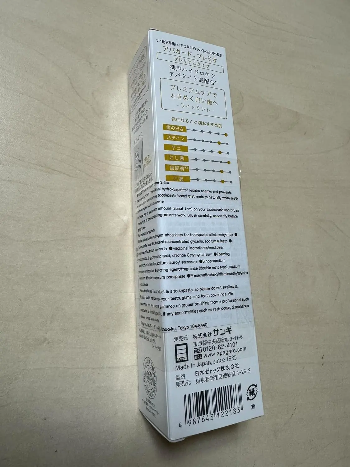 Experience superior oral care with Apagard Premio Toothpaste, a premium remineralizing toothpaste from Japan. This 100g tube of advanced dental care utilizes the power of nanohydroxyapatite, a revolutionary ingredient that works to restore and strengthen your tooth enamel. Apagard Premio goes beyond ordinary toothpaste, offering a sophisticated approach to dental hygiene. It effectively addresses early caries, white spots, and overall enamel health. Regular use of Apagard Premio helps to fill microscopic fissures in your teeth, smoothing the surface and making it more resistant to plaque and staining. This toothpaste is not only effective but also gentle on your teeth and gums. Its unique formulation helps to prevent cavities, reduce sensitivity, and promote a brighter, healthier smile. Enjoy the confidence that comes with knowing you are using a top-tier product designed to provide exceptional oral health benefits. Apagard Premio is your daily defense against tooth decay and enamel erosion, delivering professional-level care in the comfort of your own home. Imported directly from Japan, this product ensures authenticity and adherence to the highest quality standards. Incorporate Apagard Premio into your daily routine for a noticeably cleaner, stronger, and more radiant smile. This premium toothpaste is more than just a cleaning agent; it’s an investment in your long-term oral health and well-being.