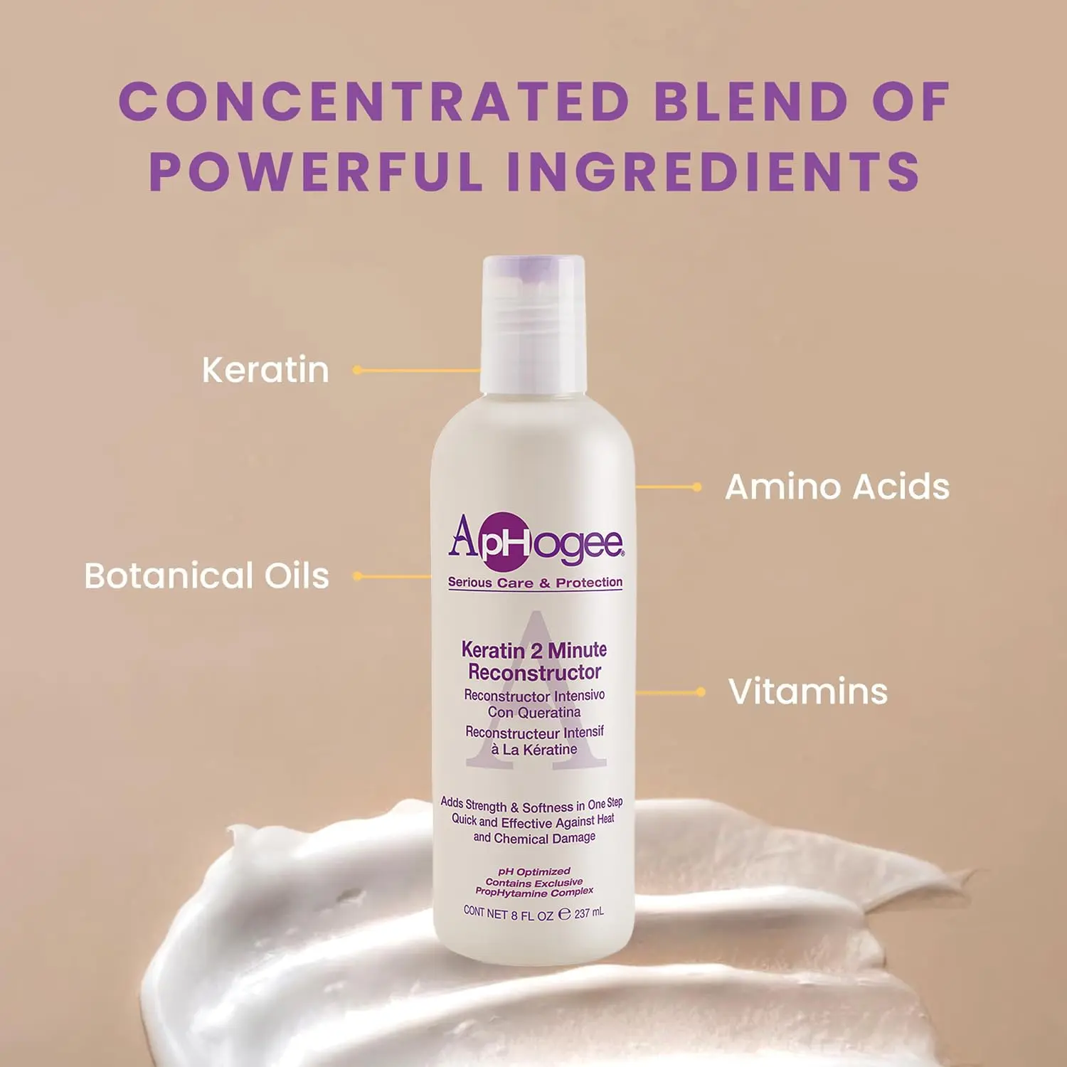 Revitalize and restore your damaged hair with Aphogee Keratin 2 Min Reconstructor. This intensive treatment works quickly to rebuild strength and softness, combating the effects of heat styling, chemical processes, and environmental stressors. Formulated with keratin amino acids, it penetrates the hair shaft to repair and fortify from within, reducing breakage and split ends. This reconstructor is especially beneficial for tinted, bleached, or relaxed hair, providing targeted care to address the unique needs of chemically treated strands. It also helps soothe irritated scalps, promoting a healthy environment for hair growth. Experience the transformative power of Aphogee Keratin 2 Min Reconstructor and unlock healthier, more resilient, and beautifully manageable hair. Say goodbye to dryness, frizz, and damage, and hello to restored shine, softness, and strength. The 273 ml bottle ensures you have ample product to continue your hair repair journey. This product is your quick and effective solution for damaged hair.