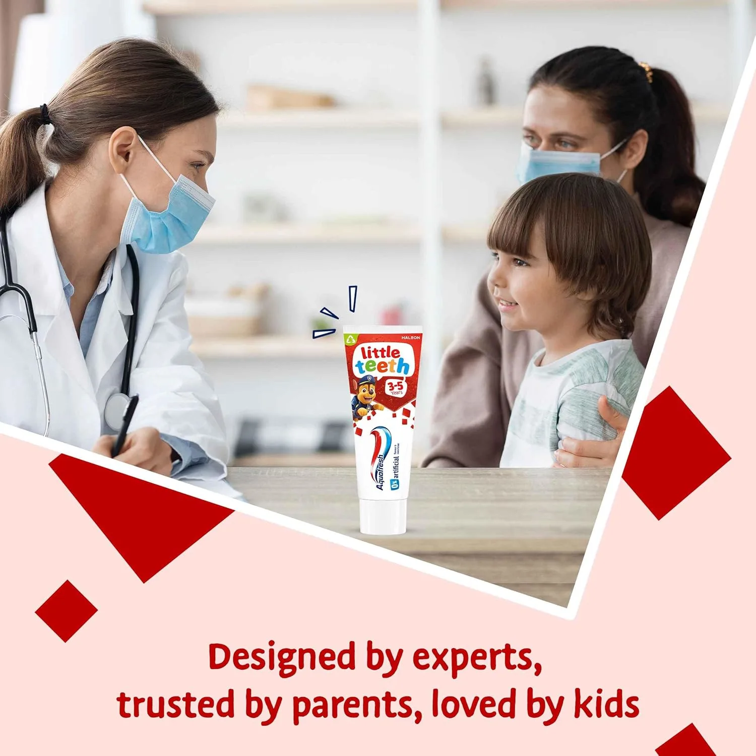 Protect your little one’s pearly whites with Aquafresh Kids Toothpaste, specially formulated for children aged 3-5 years. This gentle toothpaste provides 24-hour Sugar Acid Protection*, helping to defend against cavities and keep their teeth strong and healthy. The mild mint flavor is designed to be child-friendly, encouraging good brushing habits without the fuss. Aquafresh Kids Toothpaste contains fluoride, a clinically proven ingredient for decay prevention. Its low abrasive formula is gentle on young teeth and gums, ensuring a comfortable brushing experience. Make brushing time a breeze with Aquafresh Kids, and give your child a head start on a lifetime of healthy smiles!