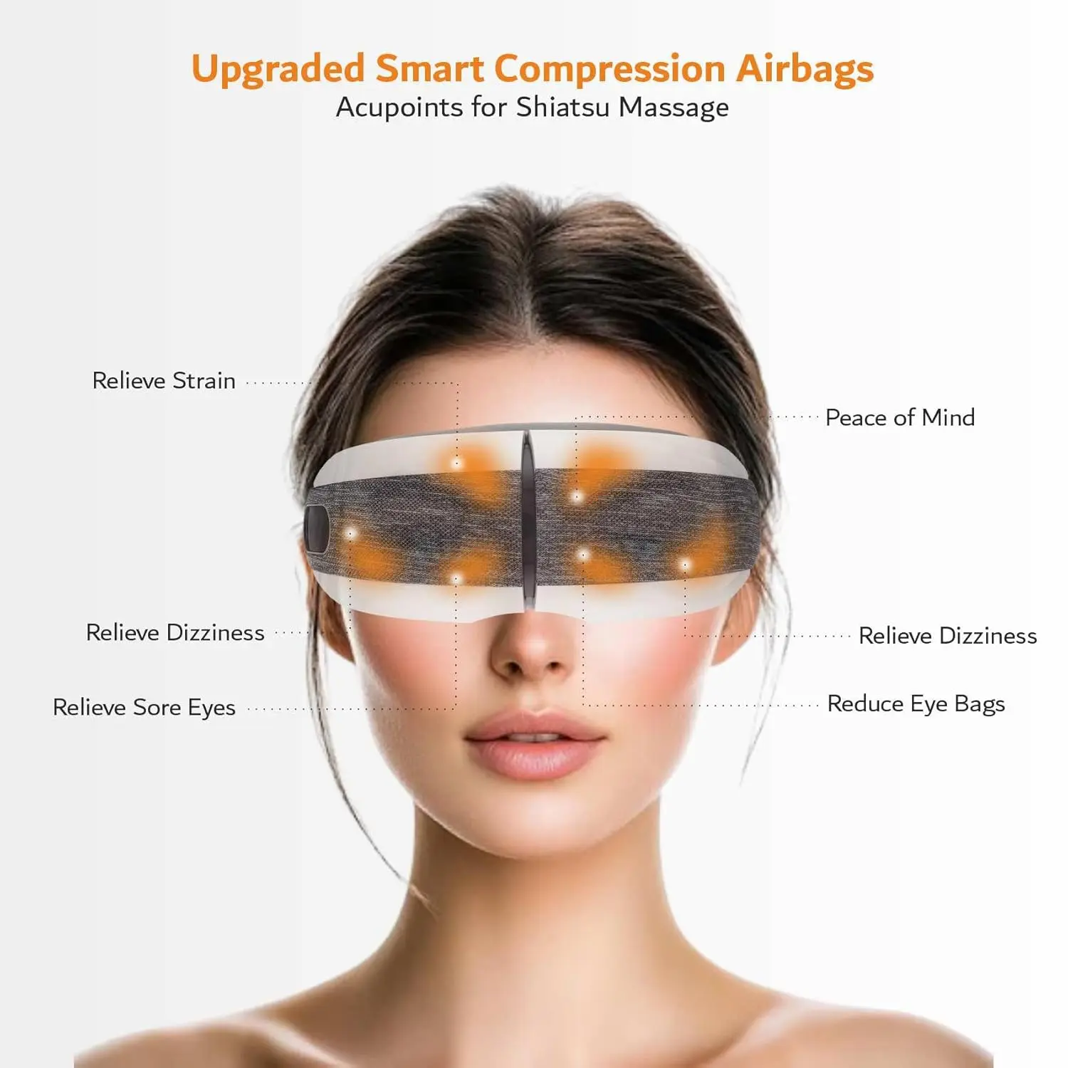 Enjoy 4 massage modes (Relieve, Relax, Sleep, Energy) with the ARES eye massager. Features Bluetooth music, a foldable design, screen display and one-button control for ultimate relaxation.