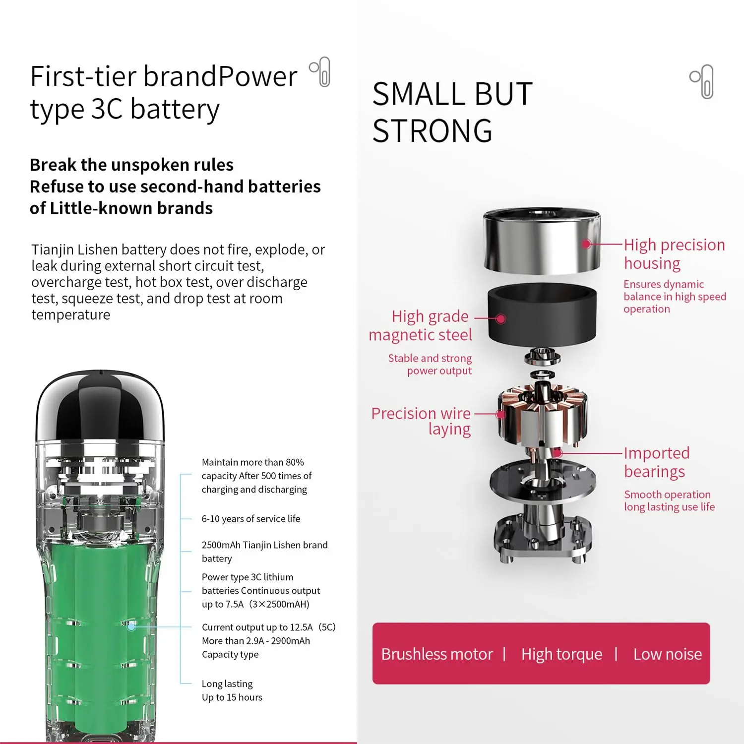 • Built-in battery 7500 mAh with more than 15 continuous working hours.
