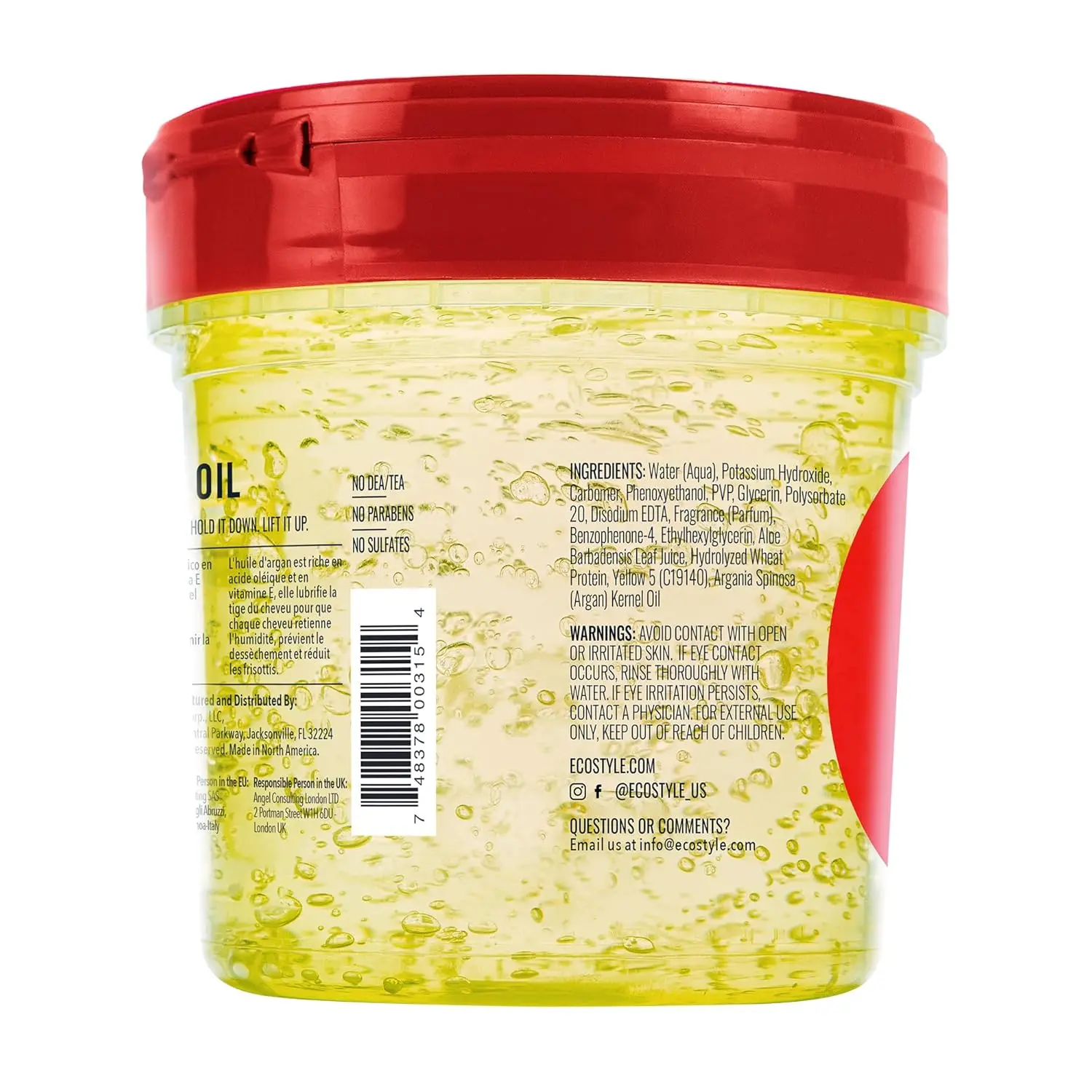 Achieve hydrated, styled, and healthy-looking hair with our Argan Oil Hair Gel. This alcohol-free formula nourishes, repairs, and styles your hair, providing long-lasting hold and a brilliant shine without the harshness of alcohol. Embrace a vegan-friendly and cruelty-free styling solution that hydrates, conditions, and effectively tames frizzy hair, leaving you with a smooth, polished finish. This versatile gel empowers you to create a multitude of styles with a high-gloss finish, all without weighing down your hair or leaving behind any sticky or unwanted residue. Infused with the richness of Moroccan Argan Oil, this gel delivers essential moisture and nourishment, ensuring your hair is styled beautifully while staying healthy and hydrated. You might recognize this incredible formula! Formerly known as Eco Styler, this gel maintains its same renowned formula, packed with all the essential ingredients you need to cater to all your unique hair styling requirements. Say goodbye to dry, brittle hair and hello to defined styles with natural movement and a radiant shine. This gel is perfect for all hair types and textures, providing a flexible hold that lasts all day long. Enjoy styling without compromise, knowing that you are using a product that is both effective and ethically conscious. Experience the difference of an alcohol-free, argan oil infused gel that truly cares for your hair.