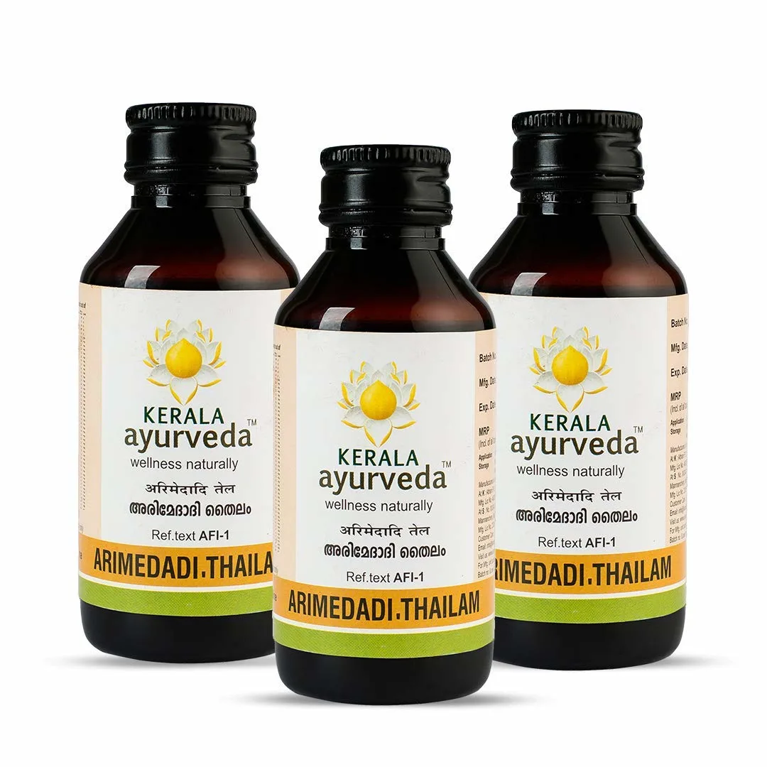 Arimedadi Thailam is an Ayurvedic oil formulated to promote optimal dental and gum health. This traditional remedy strengthens teeth, alleviates dental pain, and reduces teeth hypersensitivity. Regular gargling with Arimedadi Thailam helps improve the functionality of sensory organs located above the neck, addressing issues related to the head and neck region. It is effective in arresting gum bleeding caused by various factors and significantly reduces bad breath (halitosis) by addressing the root causes. This unique herbal blend helps to pacify aggravated Kapha and Pitta doshas, which are often implicated in oral health issues. The oil is 100% herbal and natural, ensuring a safe and gentle approach to oral care. It is free from artificial fragrances, colors, chemicals, parabens, mineral oils, and petroleum by-products, making it suitable for adults seeking a natural solution for maintaining healthy teeth and gums. Incorporate Arimedadi Thailam into your daily routine to experience the holistic benefits of Ayurveda for a healthier, fresher mouth. Regular use provides noticeable improvements in teeth strength, gum health, and overall oral hygiene, enhancing your confidence and well-being. For optimal results, gargle with 10 to 20 ml of the oil, followed by a lukewarm water rinse, two to three times a day, or as directed by your healthcare professional.
