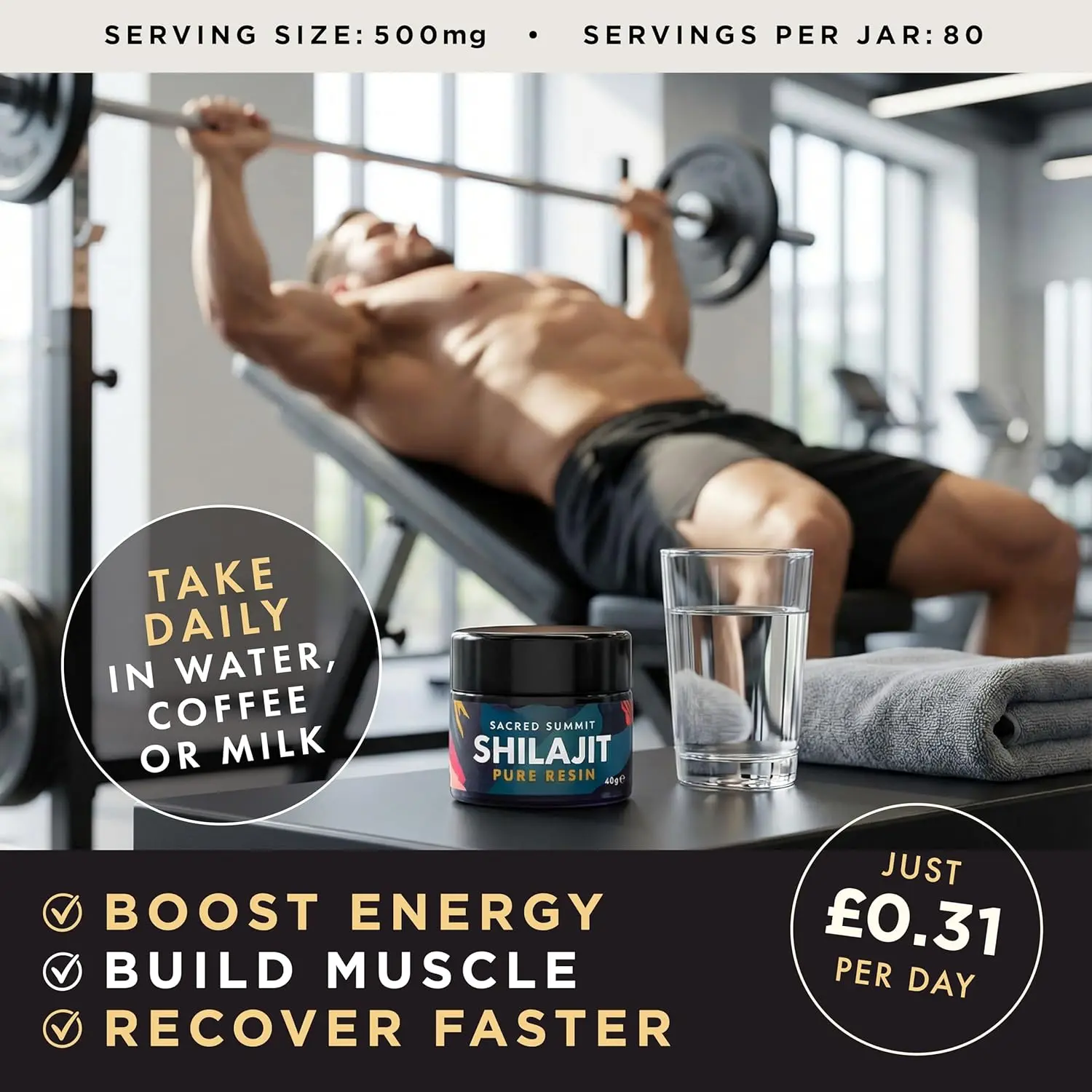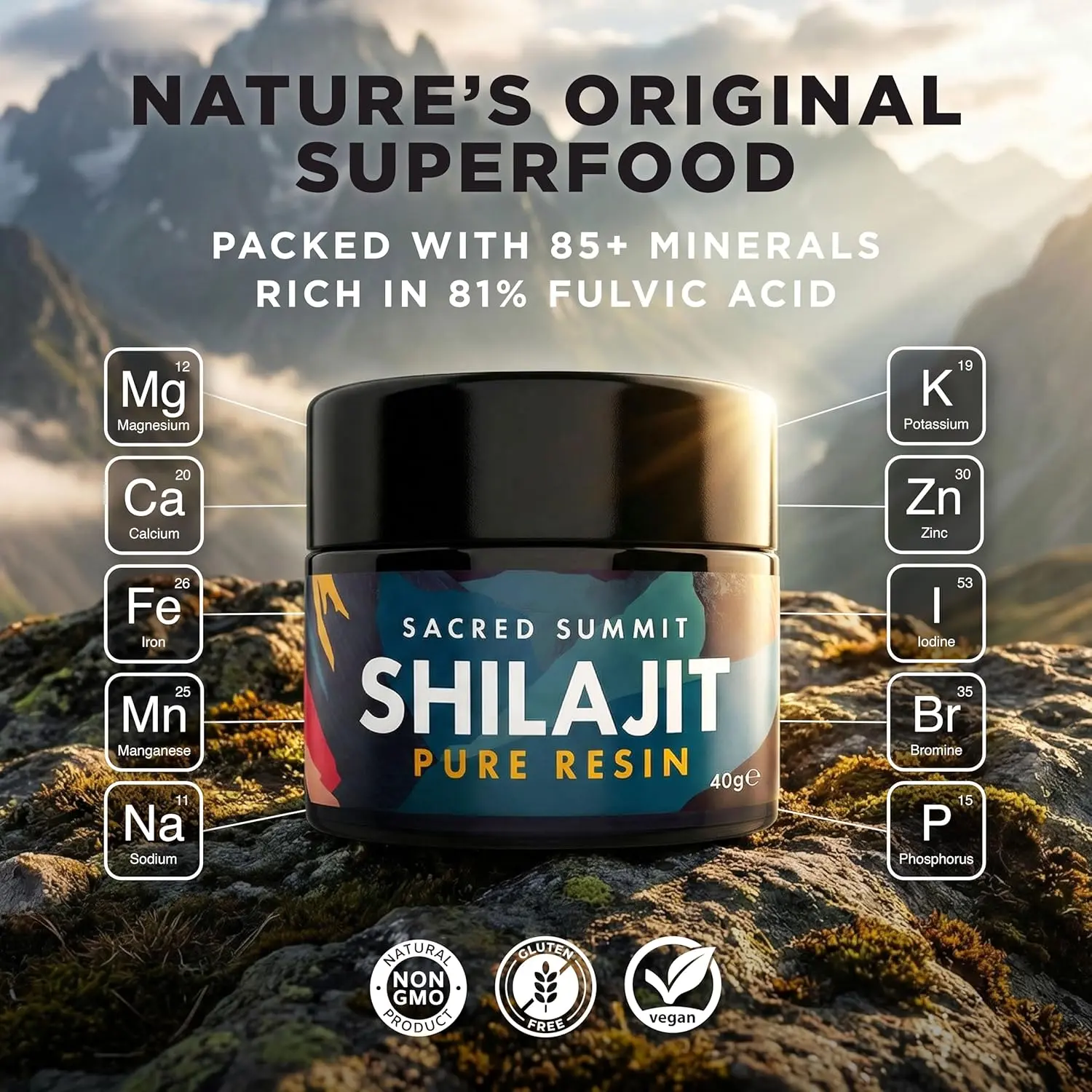 Unlock your peak performance with our Authentic Shilajit Resin! This potent formula is designed to revitalize your energy levels, support essential mineral intake, and aid in natural detoxification. Packed with a concentrated dose of 3,200mcg of B12, this resin combats fatigue and enhances stamina, ensuring you stay energized throughout your day. Our Shilajit is exceptionally rich in vital trace minerals, delivering 636mg of magnesium, 340mg of calcium, 35.6mg of iron, and 3.56mg of zinc per jar. These essential nutrients contribute to a robust immune system, optimal muscle function, strong bone health, and enhanced cognitive performance. Experience the power of a pure and potent composition, featuring 81% fulvic acid and 6.5% humic acid. This premium Shilajit offers maximum bioavailability, ensuring efficient nutrient absorption and supporting your body’s natural detoxification processes. We prioritize your safety and well-being. Every batch is rigorously third-party tested in the UK to guarantee it’s free from heavy metals and contaminants, and that it maintains consistent potency. Our Shilajit is ethically sourced from pristine mountain environments and is packaged in a Miron violet glass jar to preserve its freshness. A stainless steel spoon is included for easy and precise daily dosing. Vegan-friendly and sustainably packaged, our Shilajit resin is the perfect addition to your wellness routine. Experience the difference authentic, high-quality Shilajit can make!