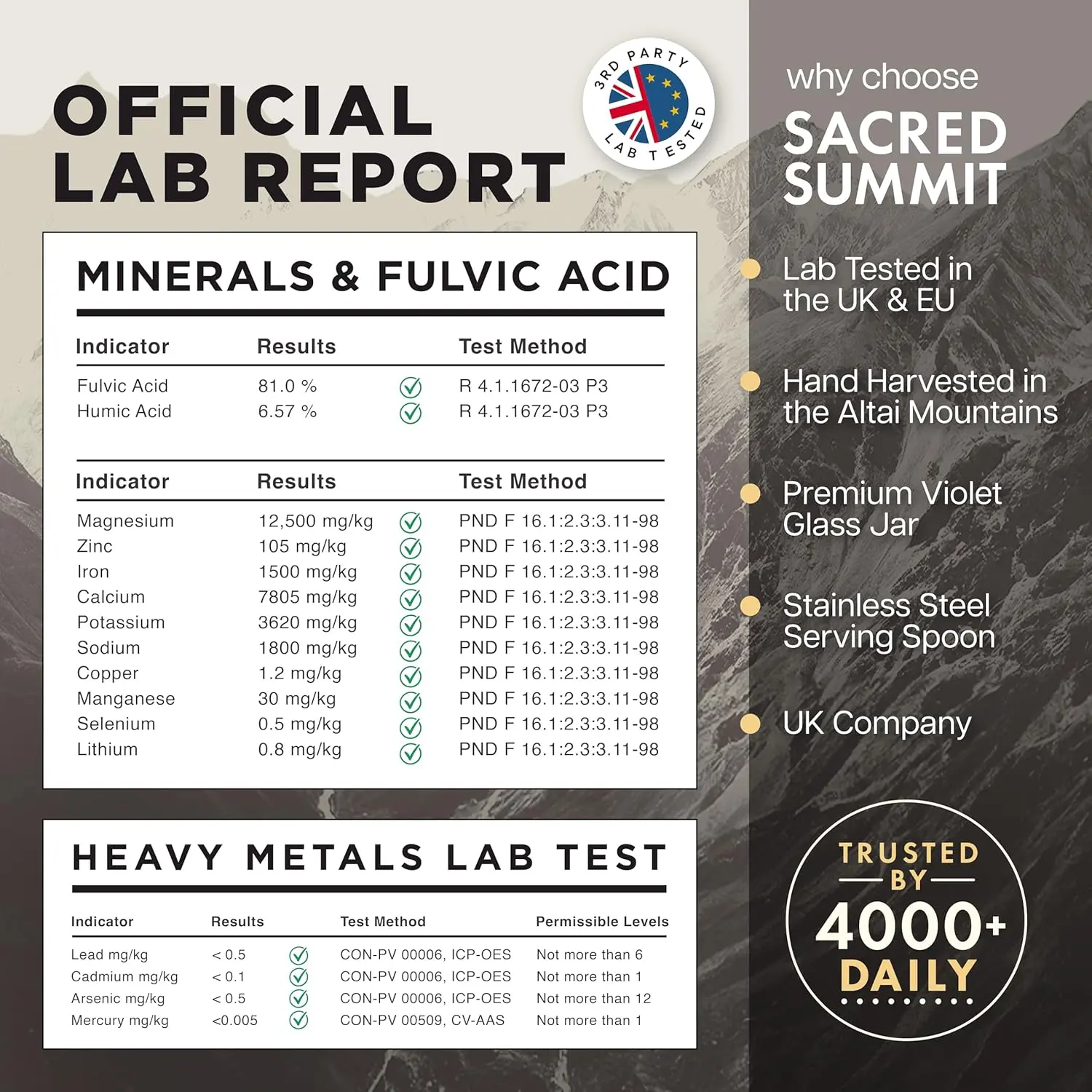 • Ultra-Rich in Trace Minerals: Magnesium, Calcium, Iron, and Zinc.