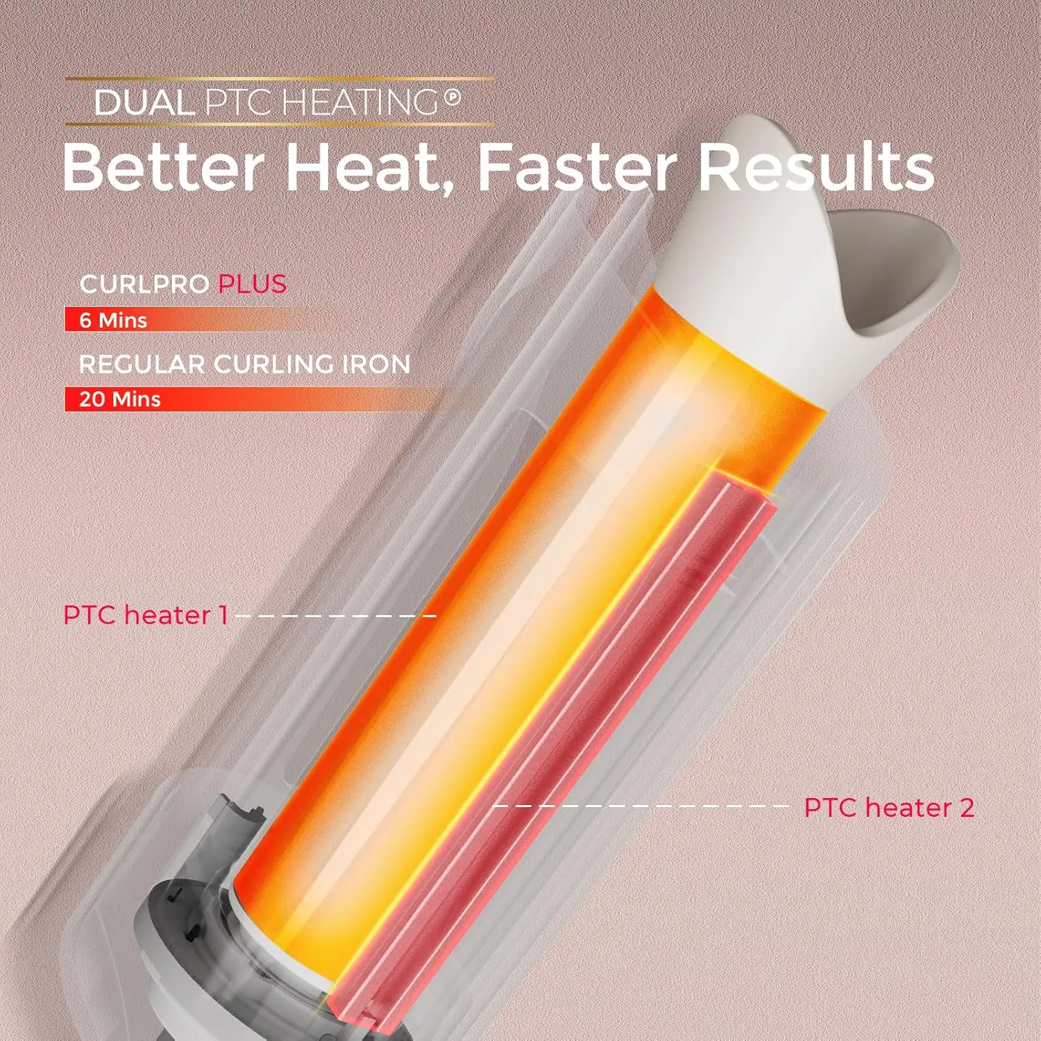 Achieve salon-worthy curls effortlessly with the TYMO CURLPRO PLUS automatic curling iron! Designed for everyone, even beginners, this innovative curler takes the guesswork out of creating beautiful, bouncy curls. Simply press a button and let the CURLPRO PLUS do the work. The built-in timer signals when your curl is perfectly set, ensuring consistent results every time. Say goodbye to uneven, frustrating curls and hello to a head full of flawless waves. Especially designed with long hair in mind. The extended barrel allows you to curl larger sections of hair at once, speeding up the styling process significantly. No more spending hours trying to curl your long locks! The TYMO CURLPRO PLUS delivers smooth, consistent curls from shoulder-length to waist-length with ease. We know how precious your time is. That’s why the TYMO CURLPRO PLUS features patented dual PTC heating technology. This innovative system heats up quickly and evenly, reducing styling time without compromising the health of your hair. Get flawless curls in minutes, perfect for busy mornings or quick touch-ups before a night out. Whether your hair is thick, thin, fine, or coarse, the TYMO CURLPRO PLUS adapts to your unique hair type. The rotating curling iron with a floating plate ensures even heat distribution and creates well-defined curls that last up to 72 hours. Enjoy bouncy, beautiful curls all day and all night, without worrying about them falling flat. Safety is our top priority. The TYMO CURLPRO PLUS features a 360° anti-scald design to protect your skin from burns. Anti-tangle technology prevents your hair from getting caught or tangled in the curler. Plus, the T-GLOSS tourmaline ceramic coating, infused with 600 million negative ions, leaves your hair shiny, smooth, and frizz-free. Get ready to experience the easiest, safest, and most effective way to curl your hair with the TYMO CURLPRO PLUS!