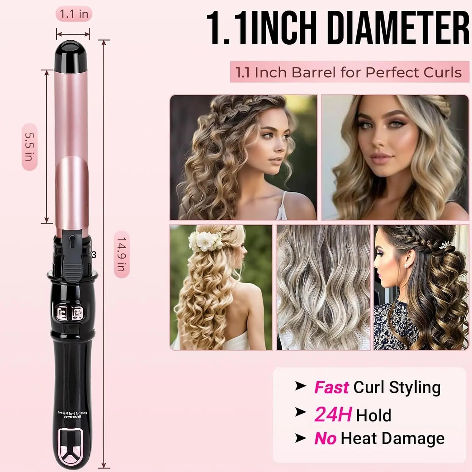 • 1.1-inch ceramic barrel for luxurious results
