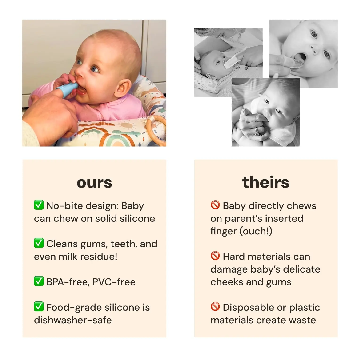 Gentle & safe oral care for babies! Our finger brush features soft silicone bristles & a tongue scraper, made from food-grade silicone. Dishwasher safe & BPA-free.