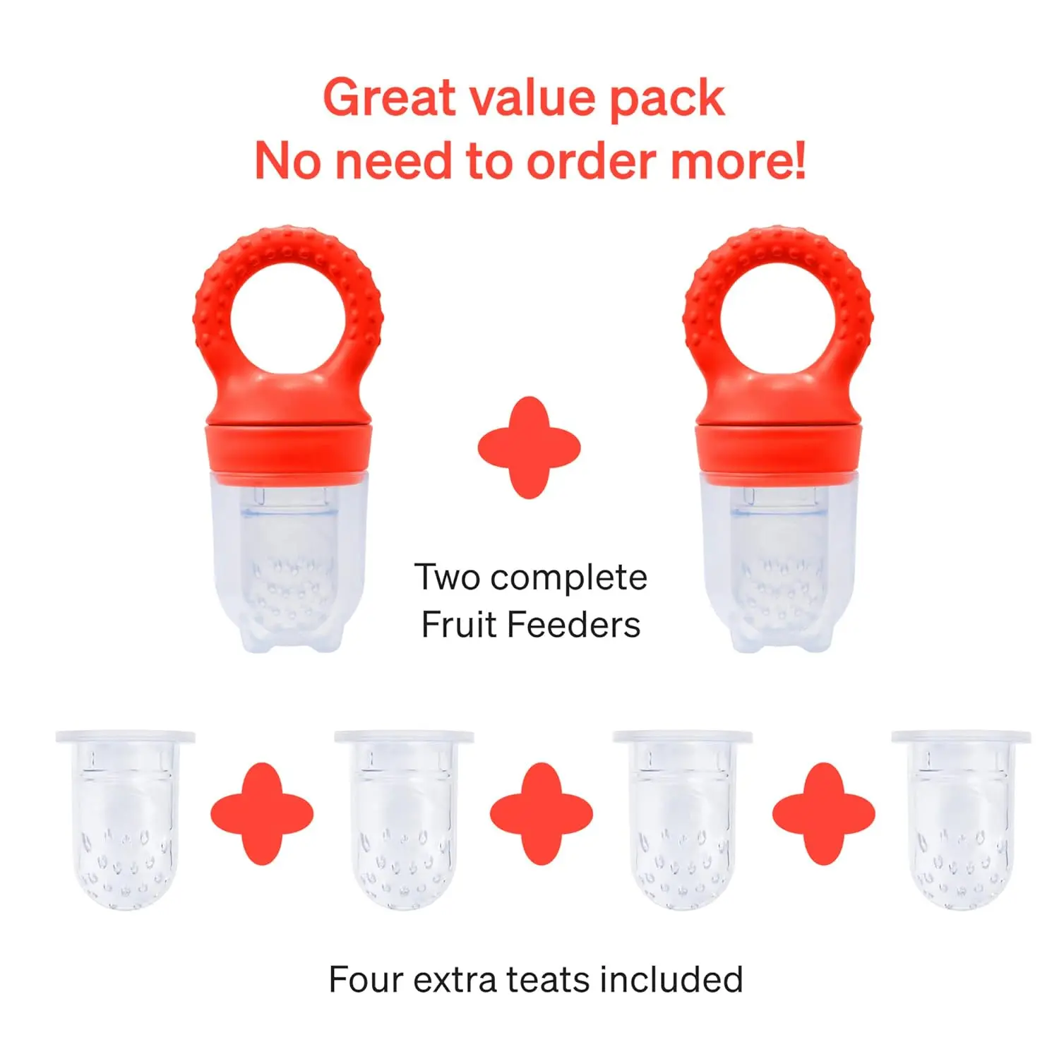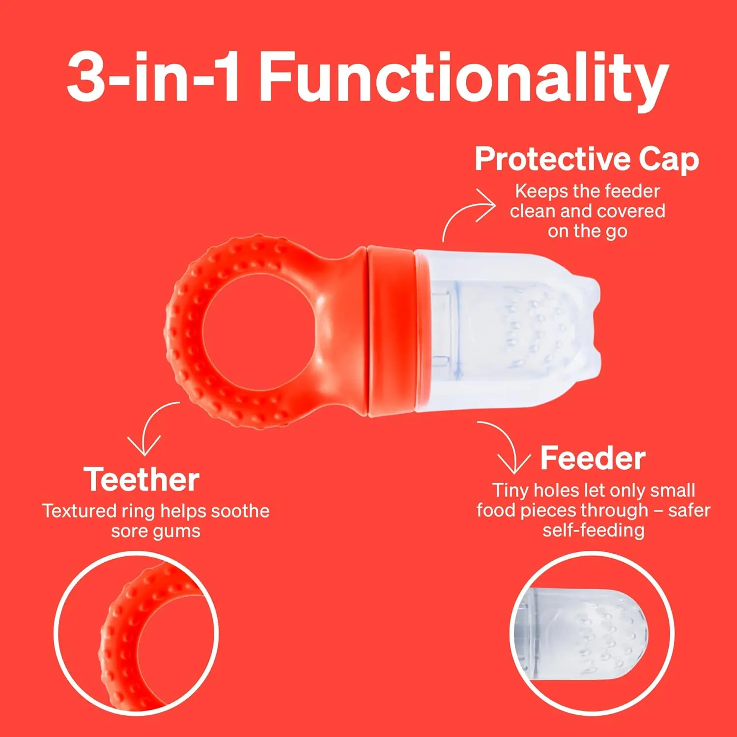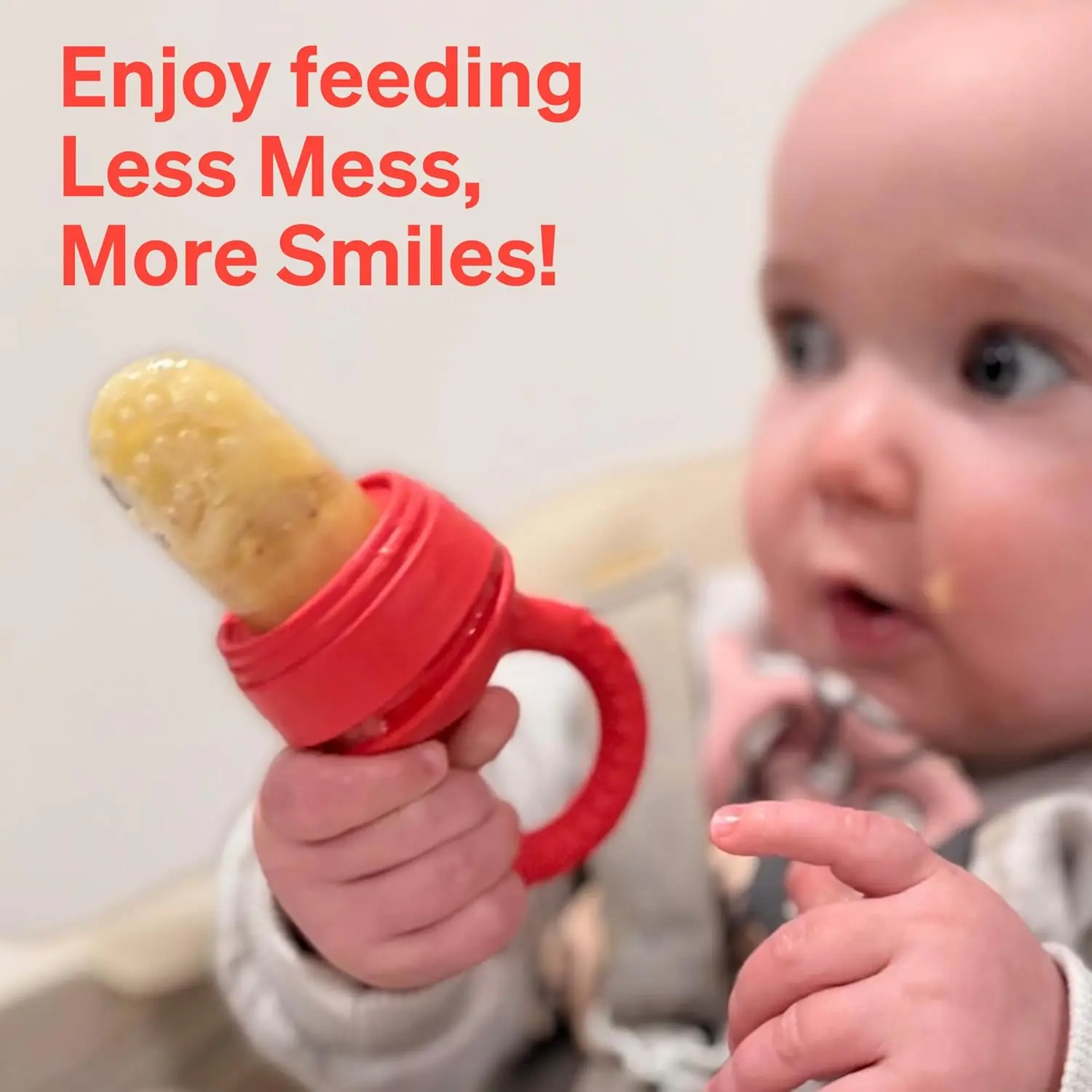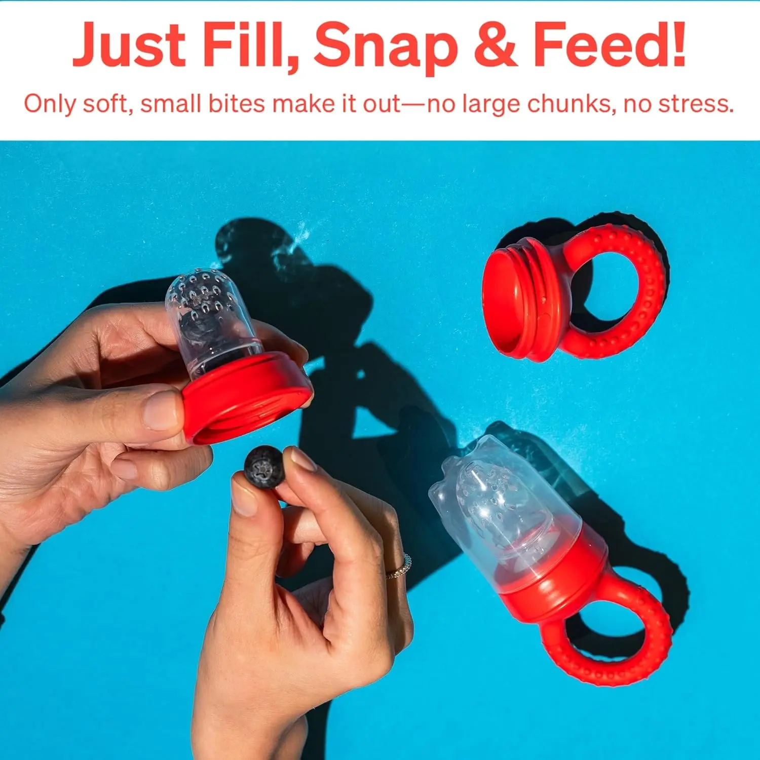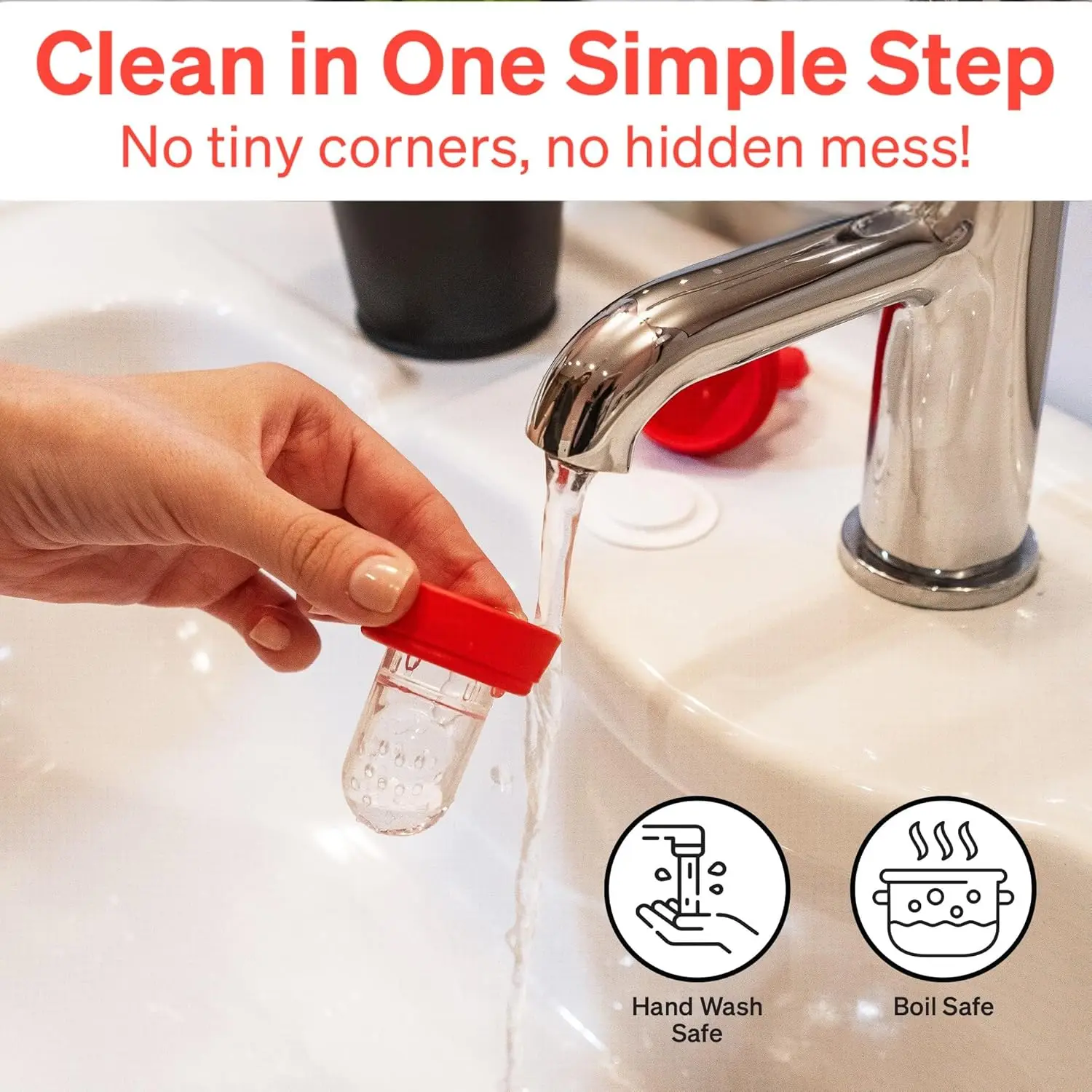 Introduce your little one to the wonderful world of solid foods safely and easily with the LoveNoobs Baby Fruit Feeder Teether Pacifier 2-Pack! This innovative 3-in-1 solution functions as a baby food feeder, a soothing teether, and a stimulating teething toy. Say goodbye to worrying about choking hazards. Our feeder is designed with perfectly sized holes that allow only small, manageable pieces of food to pass through, ensuring a safe and enjoyable eating experience for your baby. Made from 100% food-grade silicone, our feeder is free from BPA, Phthalates, and BPS, guaranteeing utmost safety and peace of mind. It’s gentle on delicate gums and perfect for introducing a variety of fresh fruits, vegetables, and even meats. The universal size makes it ideal for babies at different stages of their feeding journey. Easy to clean and dishwasher-safe, the LoveNoobs Baby Fruit Feeder is a must-have for parents looking for a convenient and safe way to introduce solid foods to their little ones. From easing teething pain to promoting healthy eating habits, this feeder is an essential tool from 6 months and up, making it a thoughtful and practical baby shower gift. It’s lightweight and easy for tiny hands to hold, plus it comes with a hygiene cap to keep things clean when not in use. For added relief during teething, simply chill the feeder in the freezer for a cooling sensation that will soothe sore gums. Let your baby explore new flavors and textures with confidence and joy using the LoveNoobs Baby Fruit Feeder Teether Pacifier. This all-in-one tool simplifies feeding and makes introducing solids a breeze.