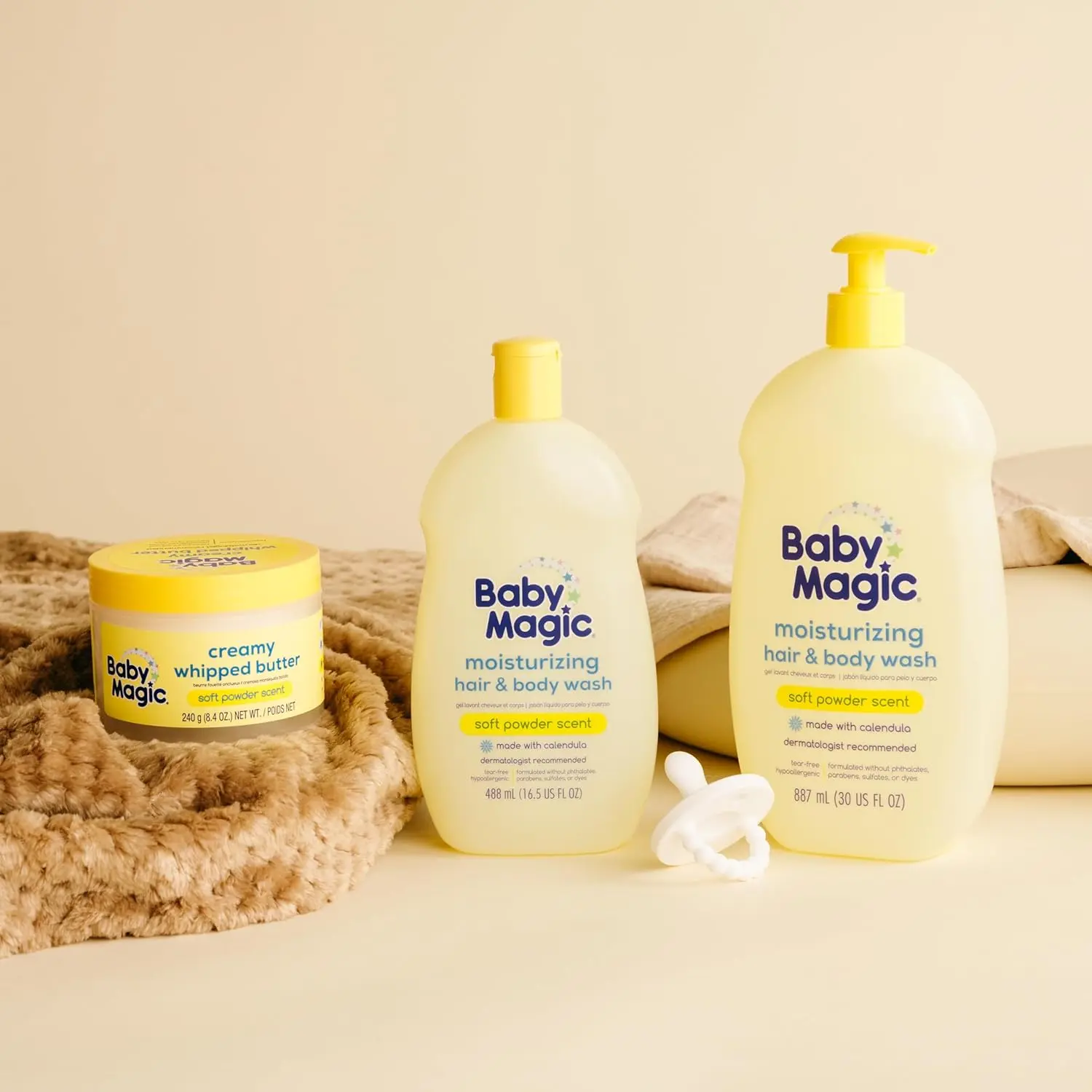 Bathe your little one in the gentle care of Baby Magic Gentle Wash. This tear-free, head-to-toe cleanser is lovingly formulated for your baby’s sensitive skin and delicate hair. Enriched with the natural goodness of calendula oil, known for its soothing and nourishing properties, this wash helps to calm and relieve dry skin, leaving it feeling soft and supple. The addition of coconut oil and shea butter provides deep, natural hydration, helping to lock in moisture and prevent dryness. Our hypoallergenic formula is meticulously crafted to be free from harsh chemicals like parabens, phthalates, dyes, and sulfates, ensuring a worry-free bathing experience for both you and your baby. Give your baby the gentle cleansing and moisturizing care they deserve with Baby Magic Gentle Wash. This formula not only cleanses, it nourishes and protects, providing a healthy start for your baby’s skin. Perfect for daily use, this gentle wash helps to maintain the natural balance of your baby’s delicate skin, leaving it feeling clean, refreshed, and oh-so-soft. It is specifically designed to be mild and gentle, making it suitable for even the most sensitive skin types. The calming scent provides a relaxing and enjoyable bath time experience.
