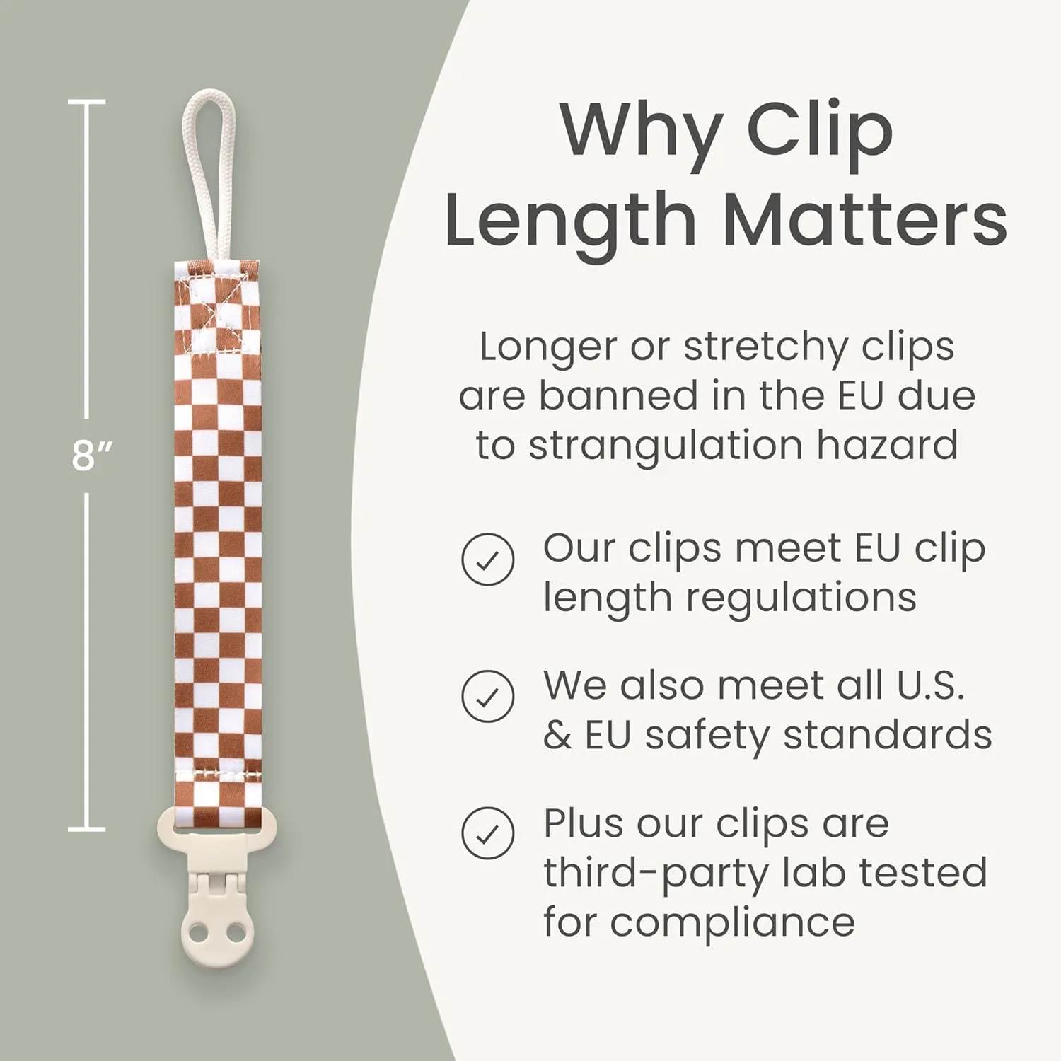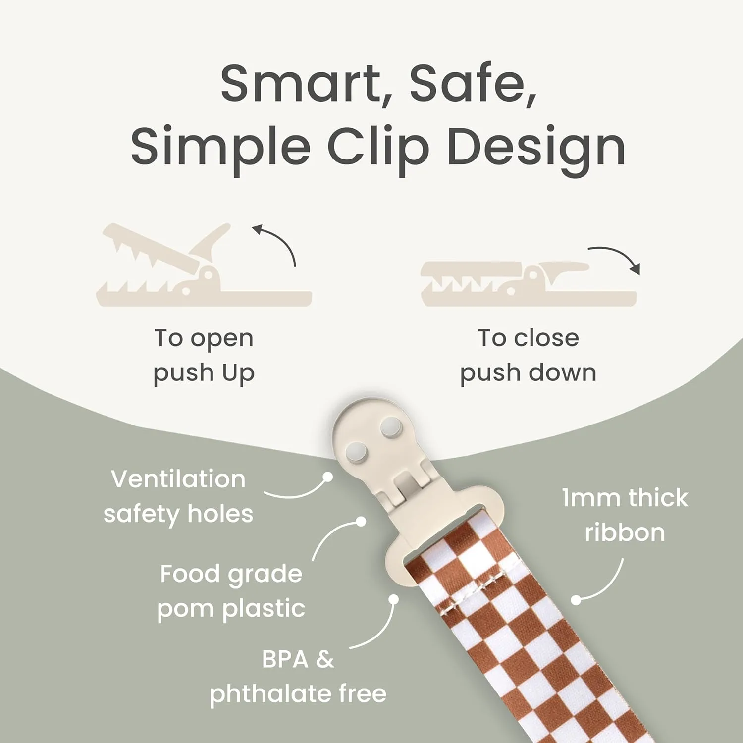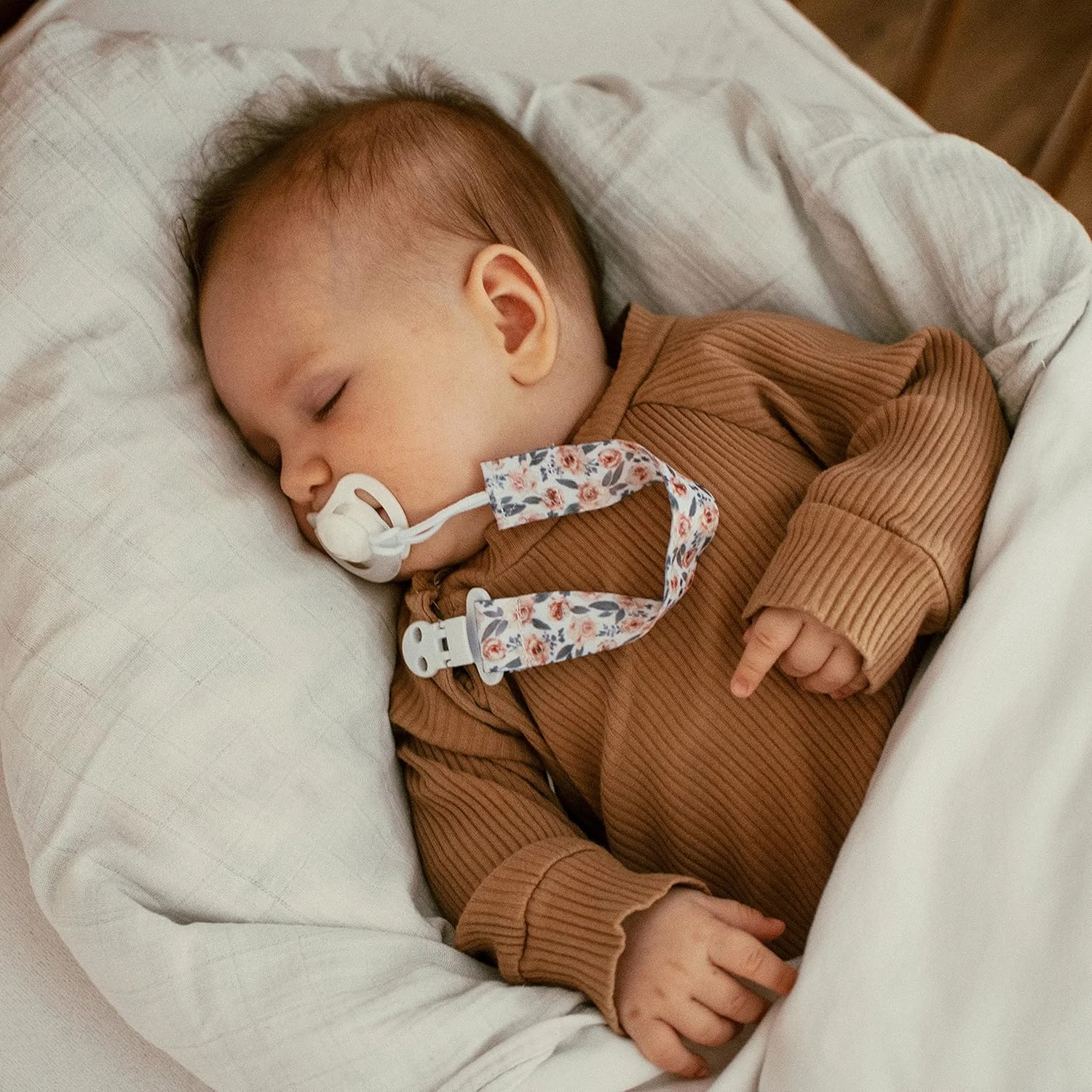 • Keeps pacifiers clean and off the floor