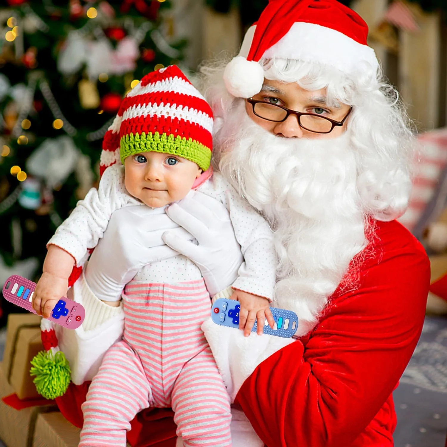 Is your little one constantly reaching for the TV remote? YAPROMO’s Baby Teething Toy Remote Control is the perfect solution! This innovative teether is designed to look just like a real TV remote, complete with 17 textured buttons that are safe and soothing for your baby’s gums. Unlike a real remote, our teether is hygienic and easy to clean, providing a clean and safe chewing experience. The vibrant colors are designed to captivate your baby’s attention, aiding in color recognition and visual development. The textured buttons provide gentle massage to the gums, offering relief from teething discomfort. Not only is it a fantastic teether, but it’s also a versatile sensory toy. The graphics on the back introduce shapes, providing a fun and engaging learning experience. The remote can even double as a mold for candy, chocolate, or ice cubes, adding another layer of fun to playtime! Its small size (1.8″×5.3″) is perfect for little hands to grasp and hold, helping to develop fine motor skills and hand-eye coordination. This baby teether is made of soft and safe silicone, is durable and will withstand lots of chewing, and is easy to clean. Give your baby a teething toy that entertains and develops essential skills – the YAPROMO Baby Teething Toy Remote Control. Say goodbye to real remote grabs and hello to happy, soothed gums!
